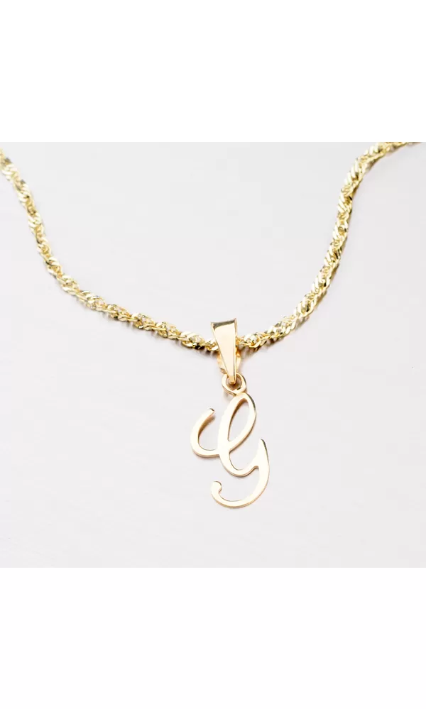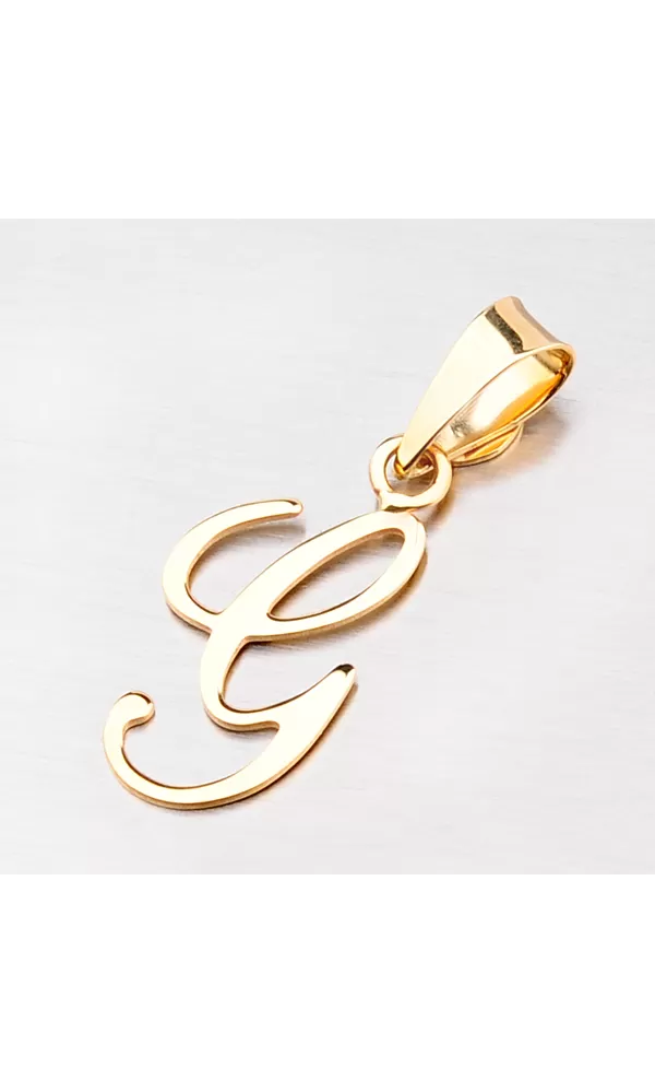 Prívesok v tvare písmenka G je vyrobený zo žltého štrnásťkarátového zlata 585/1000. Prívesok je vyrobený v lesklej povrchovej úprave a kombinácii písacieho a tlačeného písma. Na doplňujúcich fotografiách je prívesok vidieť na retiazke:  44-1028 a  44-1137 , alebo ďalej môžete vyberať v celej kategórii  zlatých retiazok.