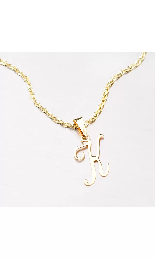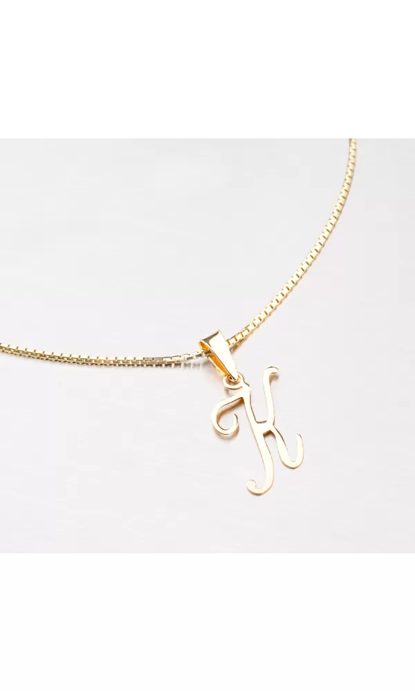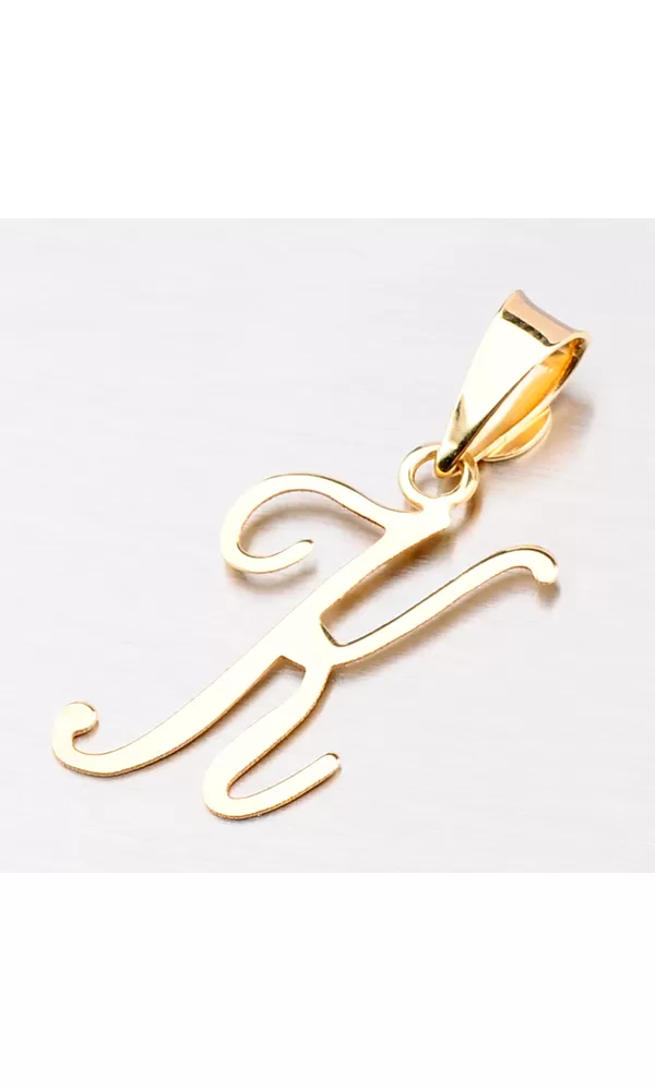 Prívesok v tvare písmenka K je vyrobený zo žltého štrnásťkarátového zlata 585/1000. Prívesok je vyrobený v lesklej povrchovej úprave a kombinácii písacieho a tlačeného písma. Na doplňujúcich fotografiách je prívesok vidieť na retiazke:  44-1028 a  44-1137 , alebo ďalej môžete vyberať v celej kategórii  zlatých retiazok.