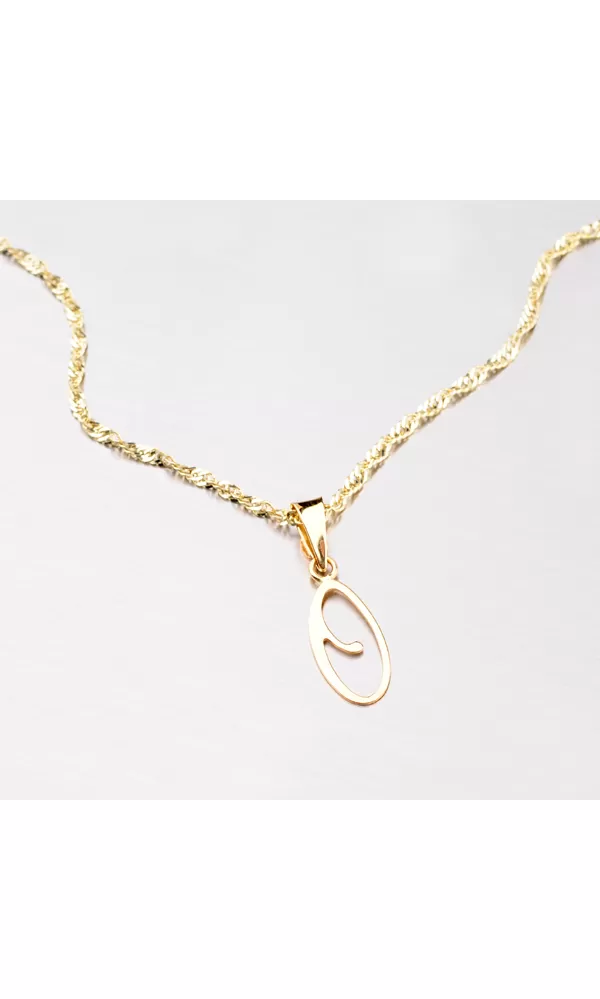 Prívesok v tvare písmenka O je vyrobený zo žltého štrnásťkarátového zlata 585/1000. Prívesok je vyrobený v lesklej povrchovej úprave a kombinácii písacieho a tlačeného písma. Na doplňujúcich fotografiách je prívesok vidieť na retiazke:  44-1028 a  44-1137 , alebo ďalej môžete vyberať v celej kategórii  zlatých retiazok.