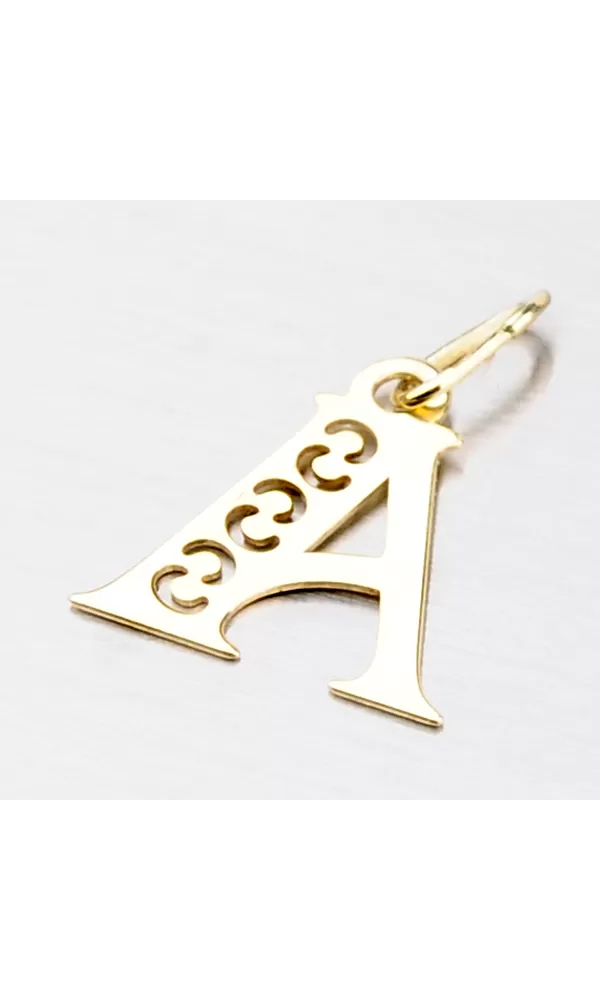 Prívesok v tvare písmenka A je vyrobený zo žltého štrnásťkarátového zlata 585/1000. Prívesok je vyrobený v lesklej povrchovej úprave s jemnými prosekmi. Na doplňujúcich fotografiách je prívesok vidieť na retiazke: 364-0100,  44-1028  a  44-1137 alebo ďalej môžete vyberať v celej kategórii  zlatých retiazok.
