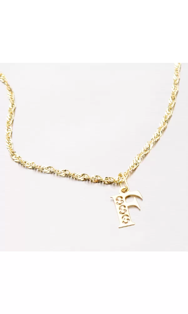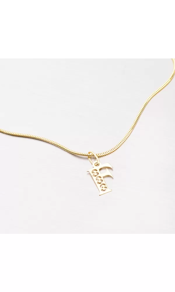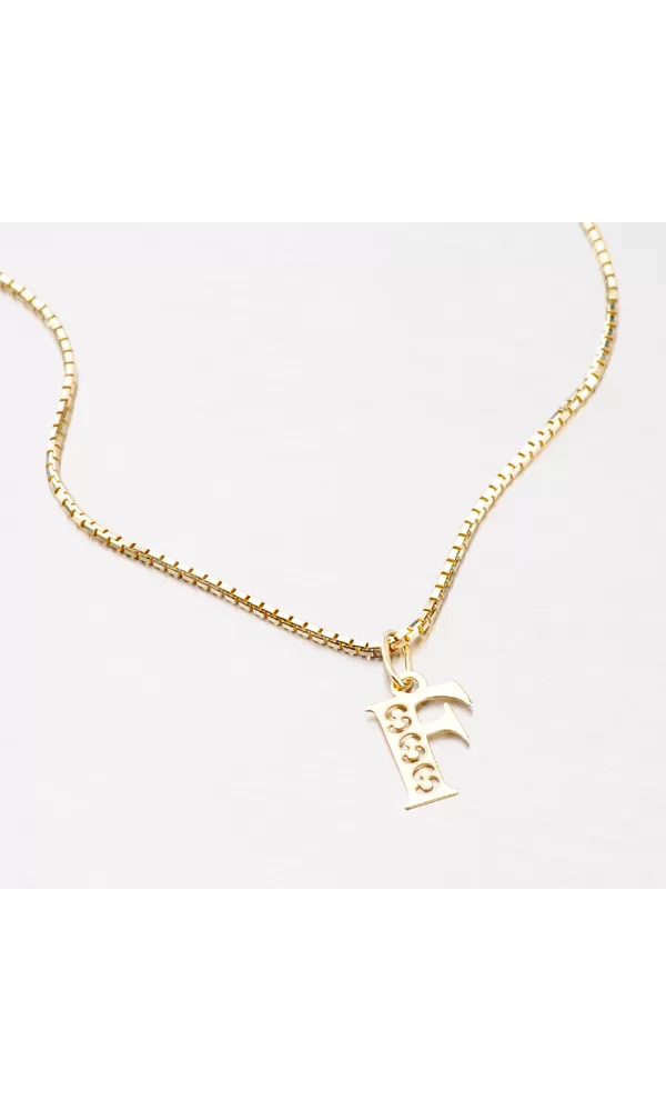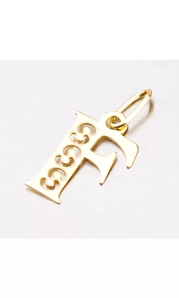 Prívesok v tvare písmenka F je vyrobený zo žltého štrnásťkarátového zlata 585/1000. Prívesok je vyrobený v lesklej povrchovej úprave s jemnými prosekmi. Na doplňujúcich fotografiách je prívesok vidieť na retiazke: 364-0100,  44-1028  a  44-1137 alebo ďalej môžete vyberať v celej kategórii  zlatých retiazok.