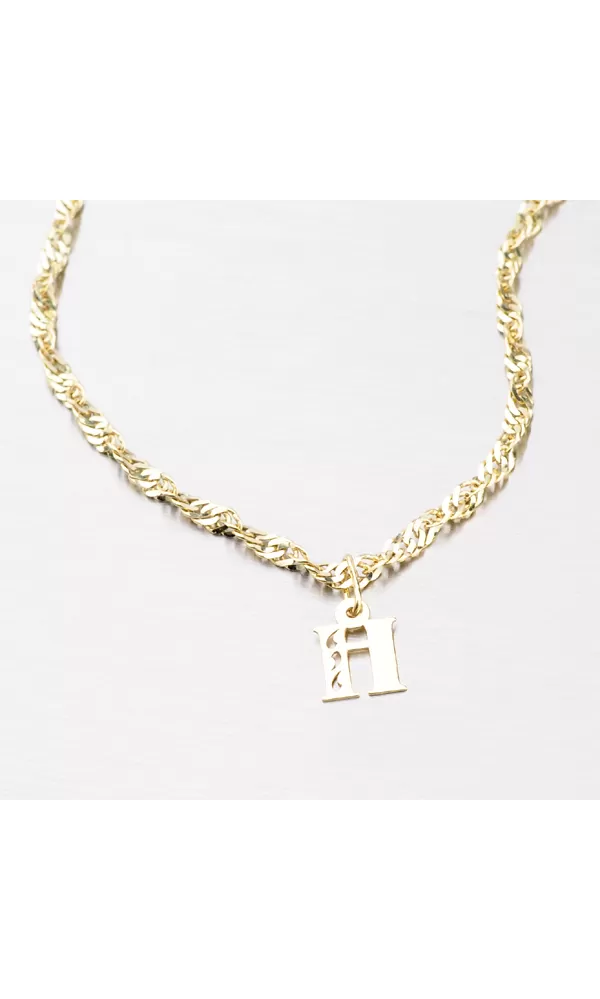 Prívesok v tvare písmenka H je vyrobený zo žltého štrnásťkarátového zlata 585/1000. Prívesok je vyrobený v lesklej povrchovej úprave s jemnými prosekmi v tvare kvapky. Na doplňujúcich fotografiách je prívesok vidieť na retiazke: 364-0100,  44-1028  a  44-1137 alebo ďalej môžete vyberať v celej kategórii  zlatých retiazok.