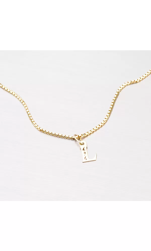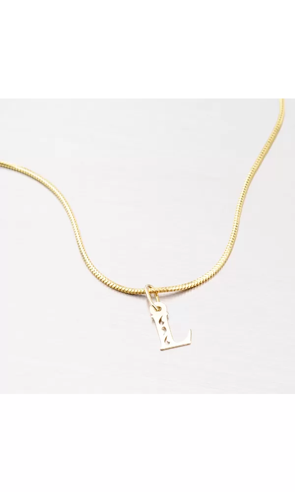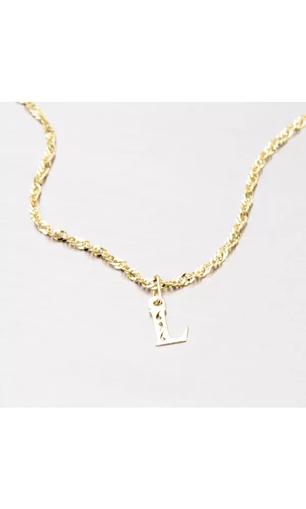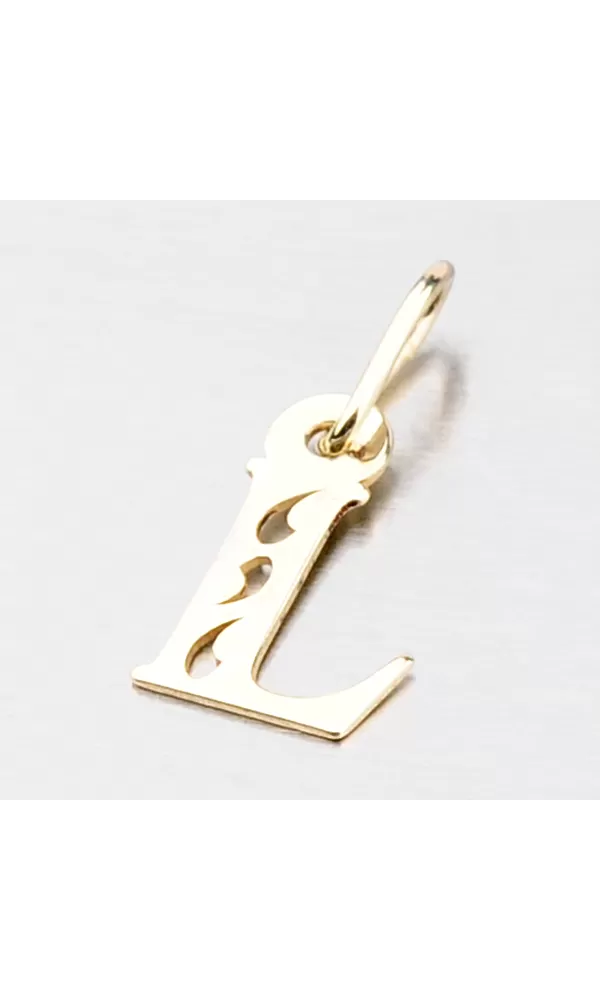 Prívesok v tvare písmenka L je vyrobený zo žltého štrnásťkarátového zlata 585/1000. Prívesok je vyrobený v lesklej povrchovej úprave s jemnými prosekmi v tvare kvapky. Na doplňujúcich fotografiách je prívesok vidieť na retiazke: 364-0100,  44-1028  a  44-1137 alebo ďalej môžete vyberať v celej kategórii  zlatých retiazok.
