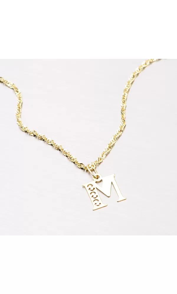 Prívesok v tvare písmenka M je vyrobený zo žltého štrnásťkarátového zlata 585/1000. Prívesok je vyrobený v lesklej povrchovej úprave s jemnými prosekmi. Na doplňujúcich fotografiách je prívesok vidieť na retiazke: 364-0100,  44-1028  a  44-1137 alebo ďalej môžete vyberať v celej kategórii  zlatých retiazok.
