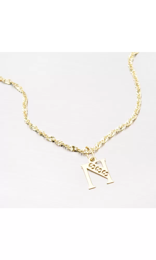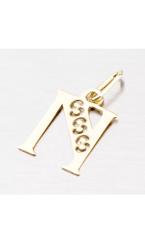 Prívesok v tvare písmenka N je vyrobený zo žltého štrnáctikarátového zlata 585/1000. Prívesok je vyrobený v lesklej povrchovej úprave s jemnými prosekmi. href="http://www.goldex.sk/zlate-retizky/retizok-ze-zluteho-zlata-45-1028">44-1028  a  44-1137 alebo ďalej môžete vyberať v celej kategórii  zlatých retiazok.