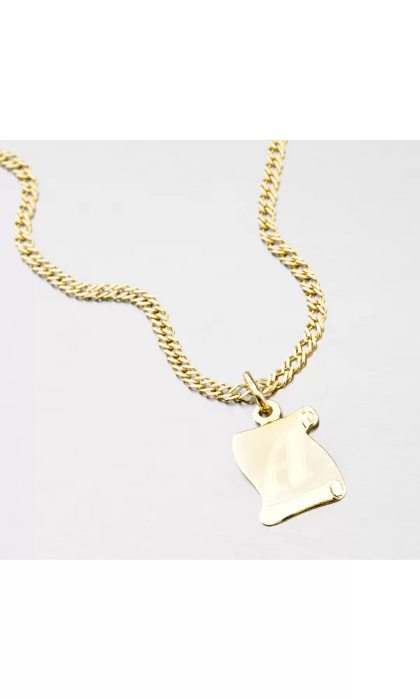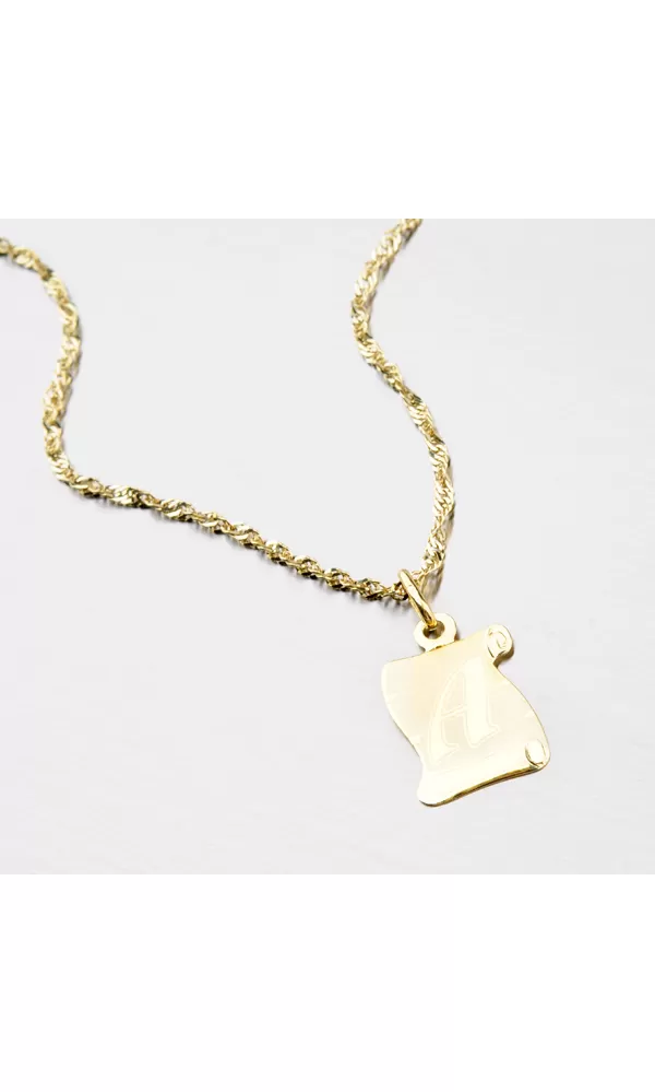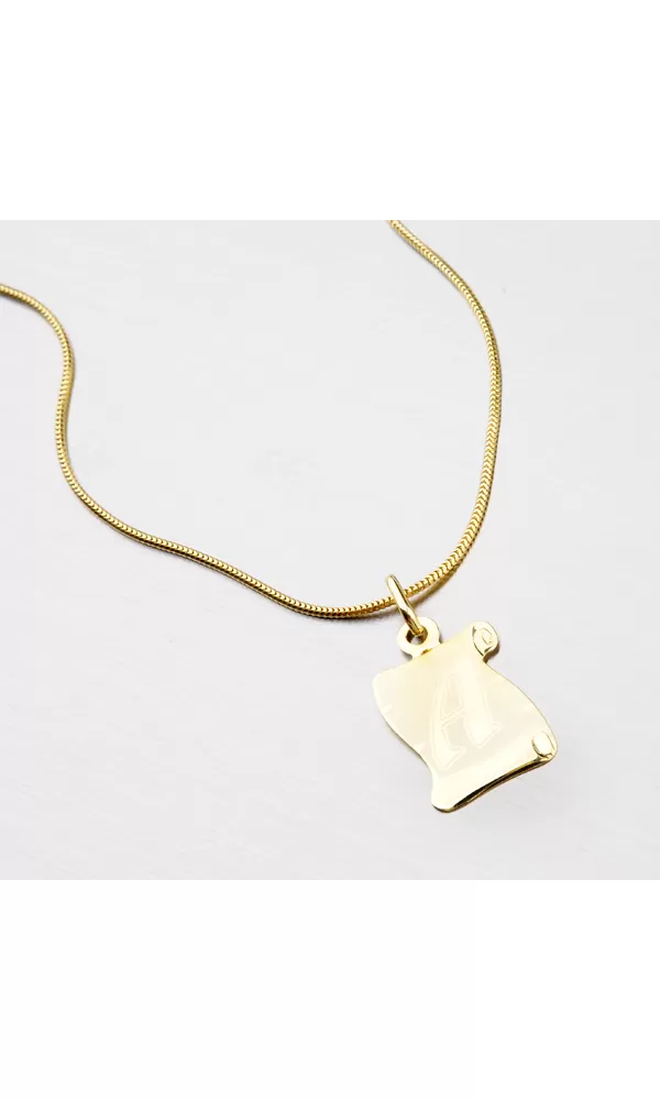 Krásny zlatý prívesok v tvare pergamenu, ktorý očarí svojou lesklou a matnou povrchovou úpravou. Prívesok je vyrobený zo žltého zlata s rýdzosťou 585/1000 a je možné ho ozdobiť vami vybranou rytinou na jeho zadnú stranu.