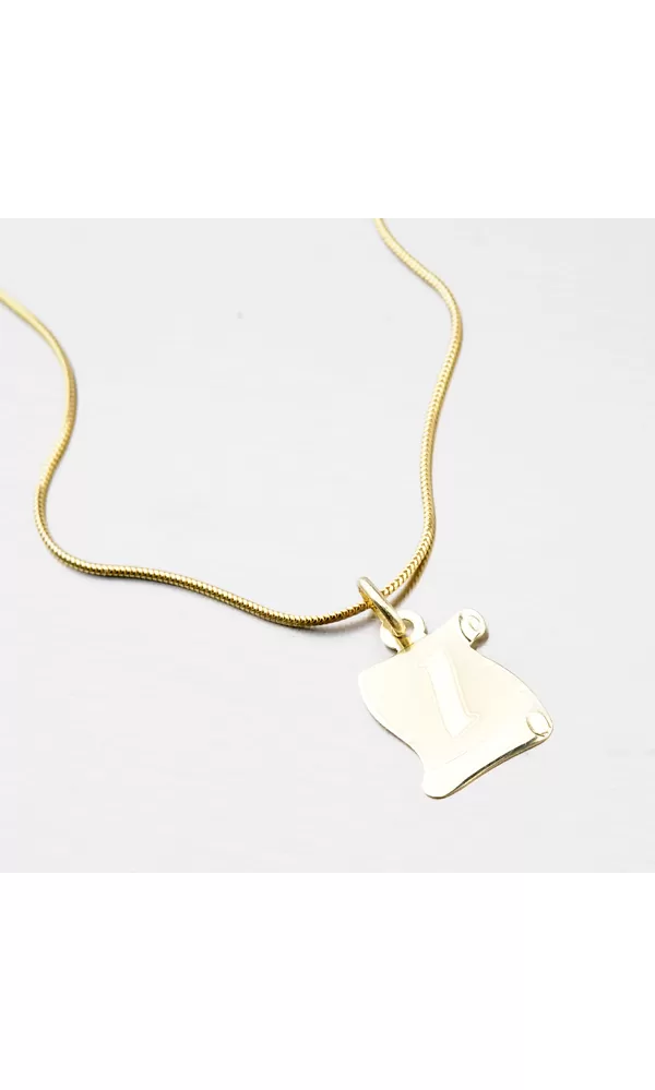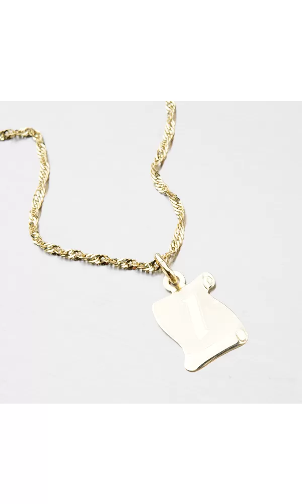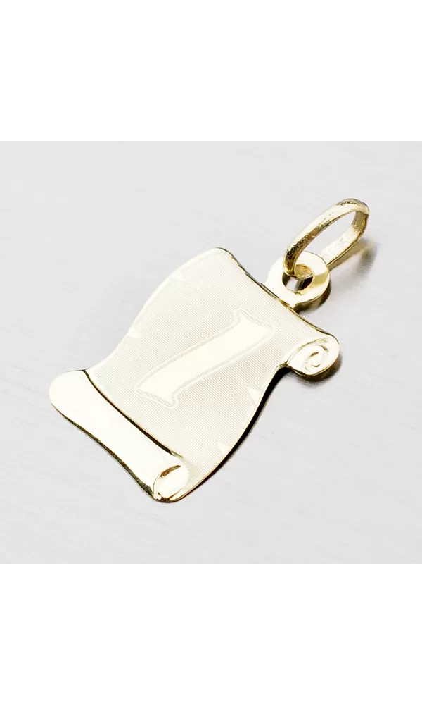 Krásny zlatý prívesok v tvare pergamenu, ktorý očarí svojou lesklou a matnou povrchovou úpravou. Prívesok je vyrobený zo žltého zlata s rýdzosťou 585/1000 a je možné ho ozdobiť vami vybranou rytinou na jeho zadnú stranu.