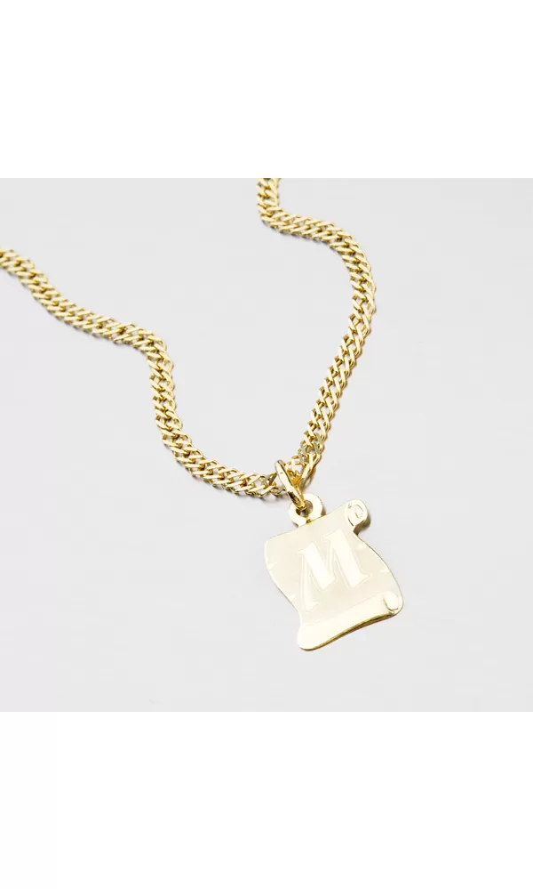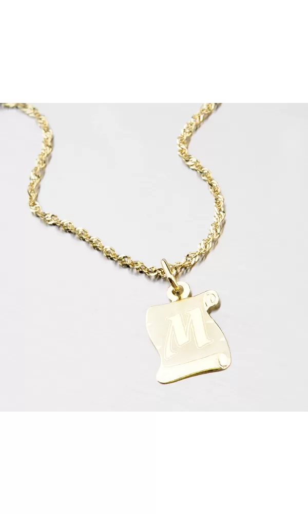 Krásny zlatý prívesok v tvare pergamenu, ktorý očarí svojou lesklou a matnou povrchovou úpravou. Prívesok je vyrobený zo žltého zlata s rýdzosťou 585/1000 a je možné ho ozdobiť vami vybranou rytinou na jeho zadnú stranu.