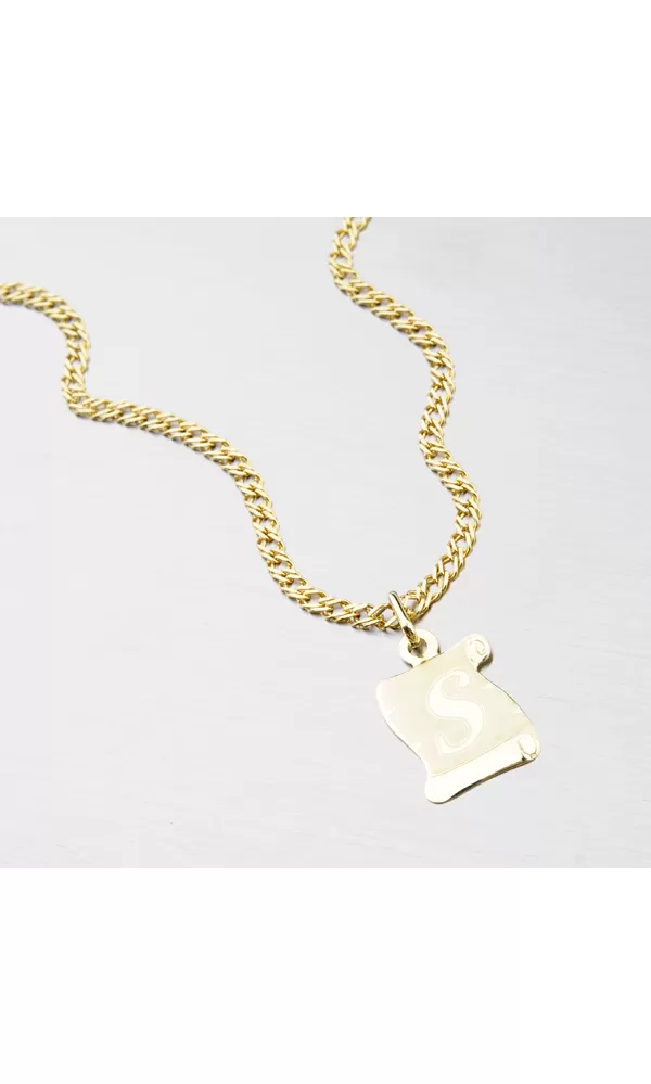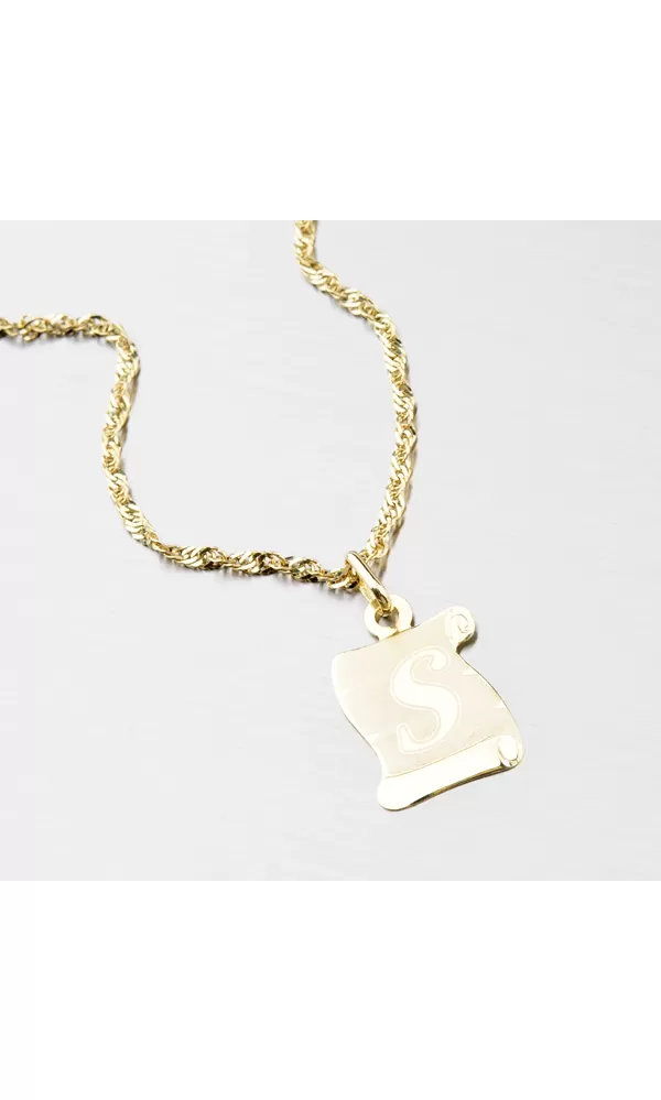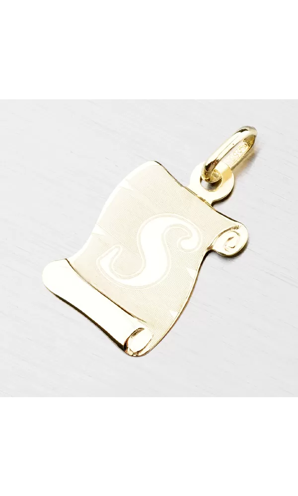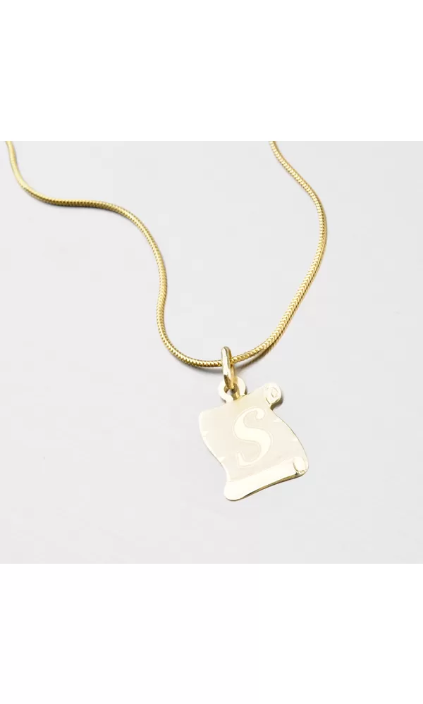 Krásny zlatý prívesok v tvare pergamenu, ktorý očarí svojou lesklou a matnou povrchovou úpravou. Prívesok je vyrobený zo žltého zlata s rýdzosťou 585/1000 a je možné ho ozdobiť vami vybranou rytinou na jeho zadnú stranu.