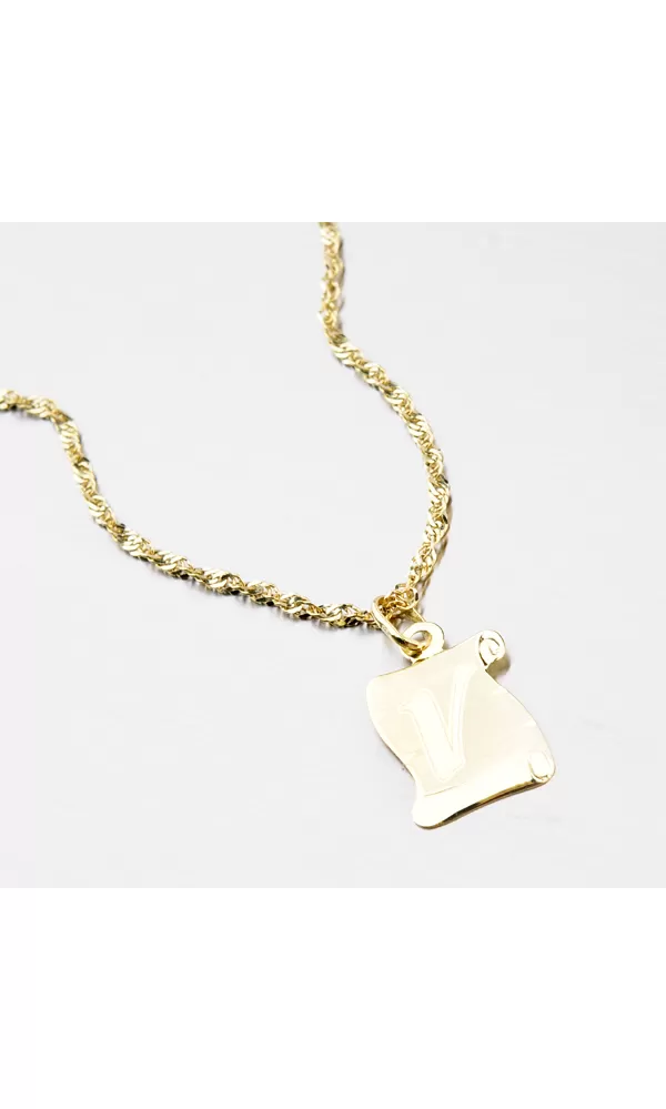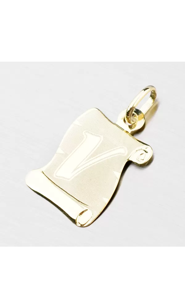 Krásny zlatý prívesok v tvare pergamenu, ktorý očarí svojou lesklou a matnou povrchovou úpravou. Prívesok je vyrobený zo žltého zlata s rýdzosťou 585/1000 a je možné ho ozdobiť vami vybranou rytinou na jeho zadnú stranu.