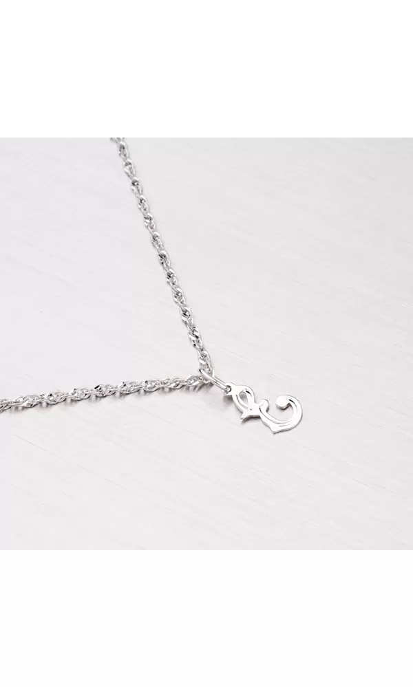 Jemný prívesok v tvare písmena E z bieleho zlata rýdzosti 585/1000 rýdzosti 14K s lesklou povrchovou úpravou. Na prívesok je vhodné použiť retiazku s priemerom 1,50 mm. Písmeno je zdobené ručným gravírovaním.