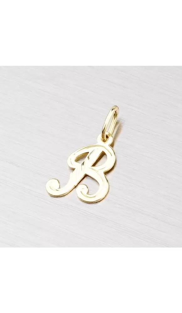 Prívesok v tvare písmenka B zo žltého štrnásťtikarátového zlata 585/1000 v lesklej povrchovej úprave.