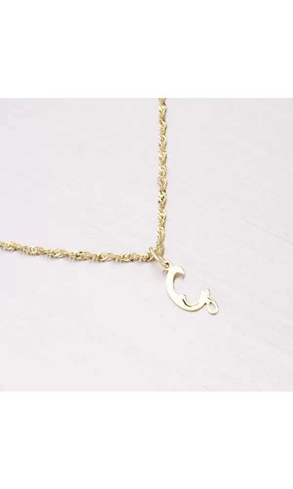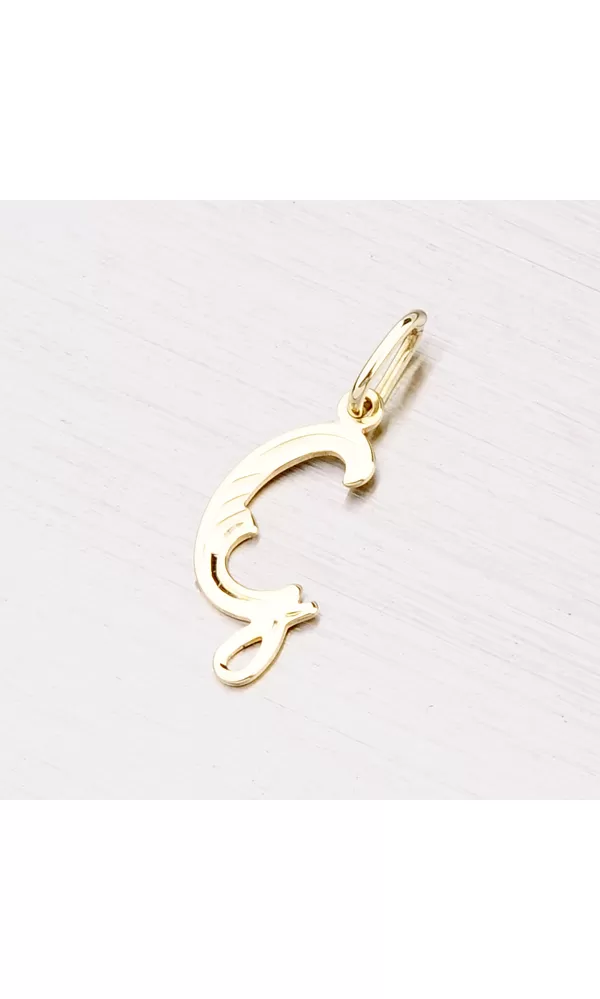 Prívesok v tvare písmenka G zo žltého štrnásťkarátového zlata 585/1000 v lesklej povrchovej úprave s ručným rytím. Písmenká patria k najobľúbenejšiemu typom šperkov z našej kolekcie.