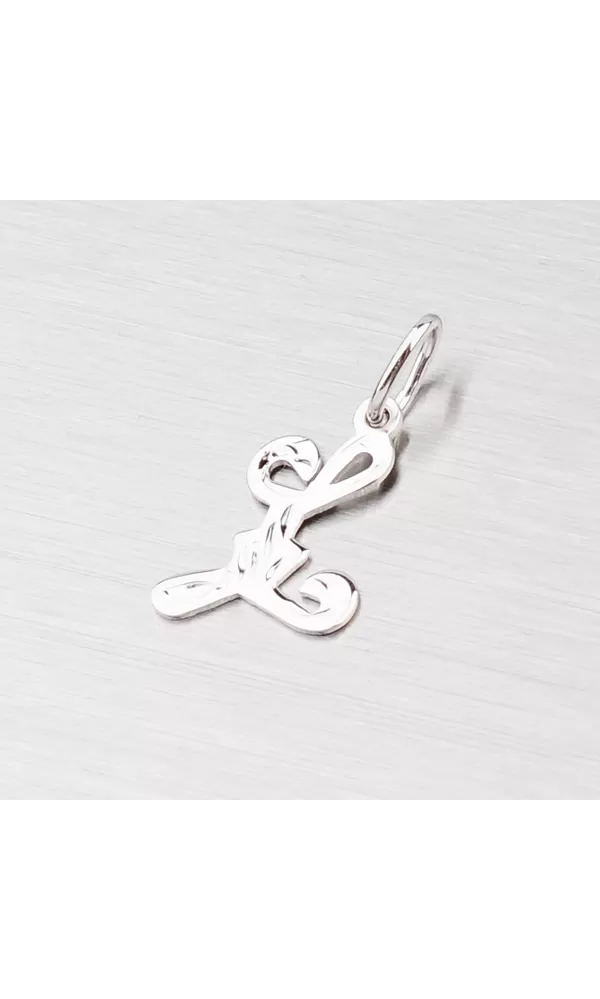 Jemný prívesok v tvare písmenka L z bieleho štrnásťkarátového zlata rýdzosti 585/1000 v lesklej povrchovej úprave. K prívesku je vhodné použiť retiazku s priemerom 1,50 mm.