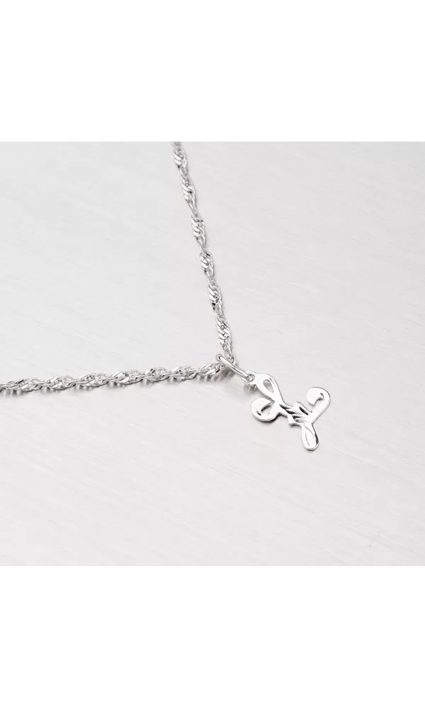 Jemný prívesok v tvare písmenka L z bieleho štrnásťkarátového zlata rýdzosti 585/1000 v lesklej povrchovej úprave. K prívesku je vhodné použiť… Celý popis