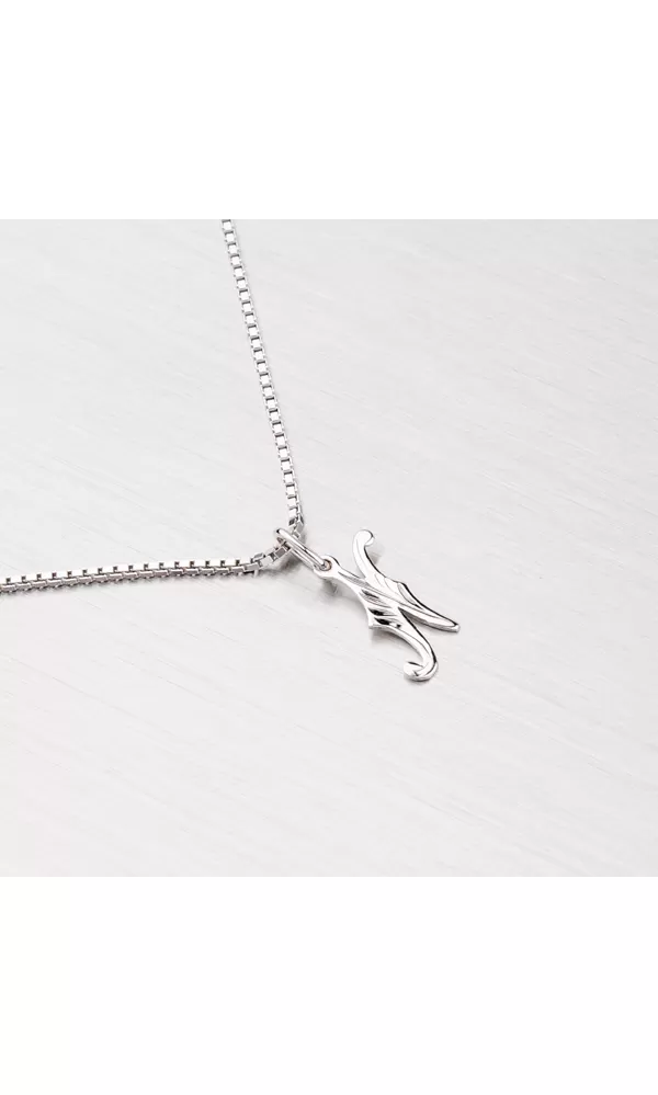 Jemný prívesok v tvare písmenka N z bieleho štrnásťkarátového zlata rýdzosti 585/1000 v lesklej povrchovej úprave. K prívesku je vhodné použiť retiazku s priemerom 1,50 mm.