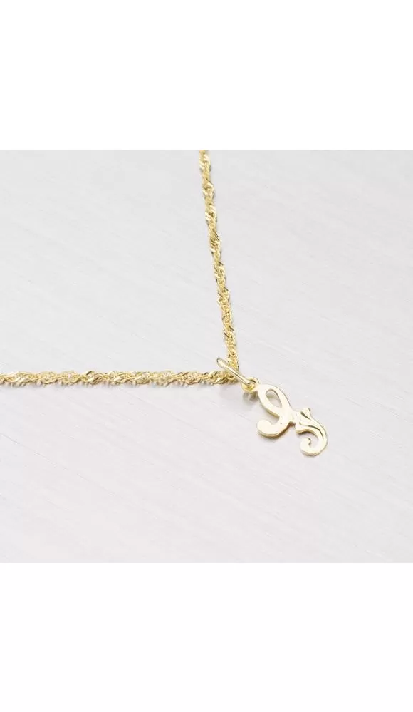 Prívesok v tvare písmenka S zo žltého štrnásťtikarátového zlata 585/1000 v lesklej povrchovej úprave.