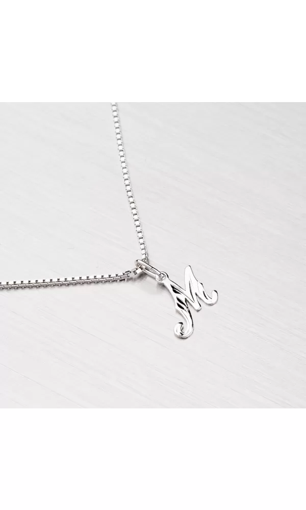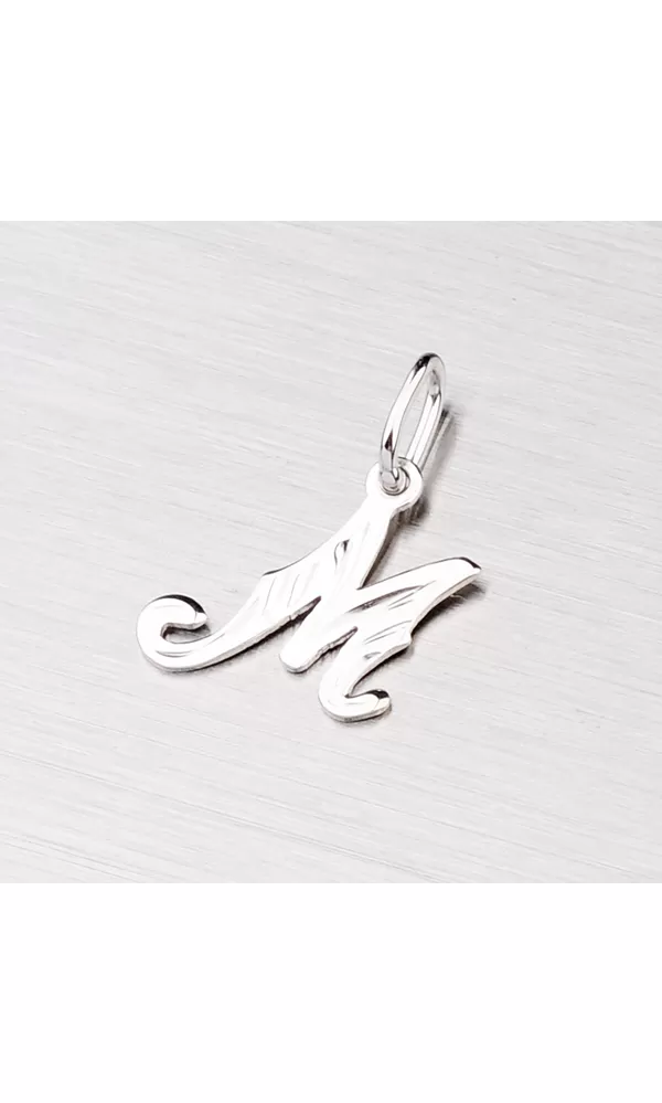 Jemný prívesok v tvare písmena M vyrobený z rýdzeho 14K bieleho zlata rýdzosti 585/1000 s lesklou povrchovou úpravou. Na prívesok je vhodné použiť retiazku s priemerom 1,50 mm. Písmeno je zdobené ručným gravírovaním.
