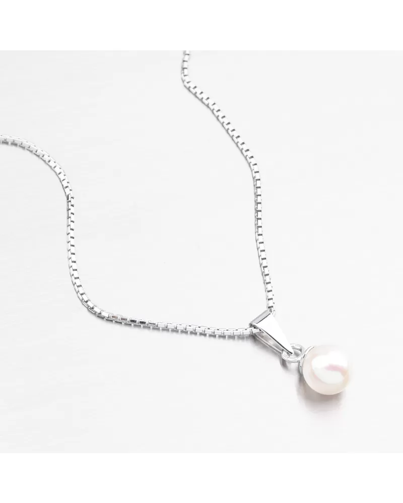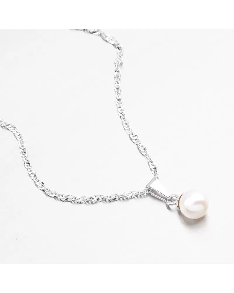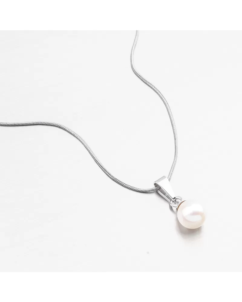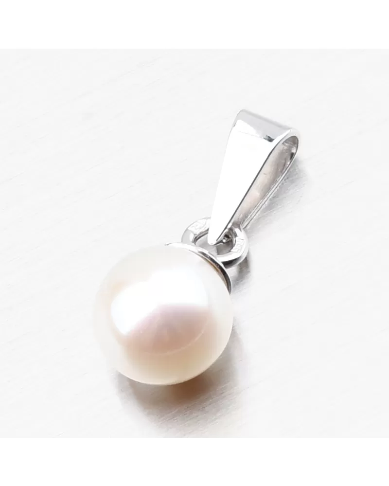 Krásny a elegantný prívesok s prírodnou sladkovodnou perlou bielej. Tento klenot bude ideálnym darčekom pre ženy, ktoré majú chuť na jednoduché šperky.