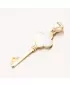 Elegantný zlatý prívesok v tvare kľúča je symbolom nových začiatkov, dôvery a skrytých tajomstiev. Jeho jemný dizajn dopĺňa nádherná perleť, ktorá kúsku dodáva jedinečný, meniaci sa lesk a nádych luxusu. Každý pohyb svetla vytvára na perlorodke nádherné odlesky, vďaka ktorým prívesok okamžite upúta pozornosť.