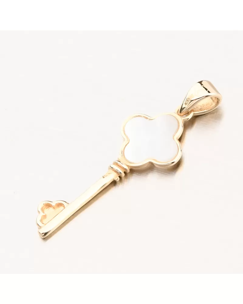 Dámsky prívesok zo žltého zlata 585 kľúč s perleťou 142P-130894
