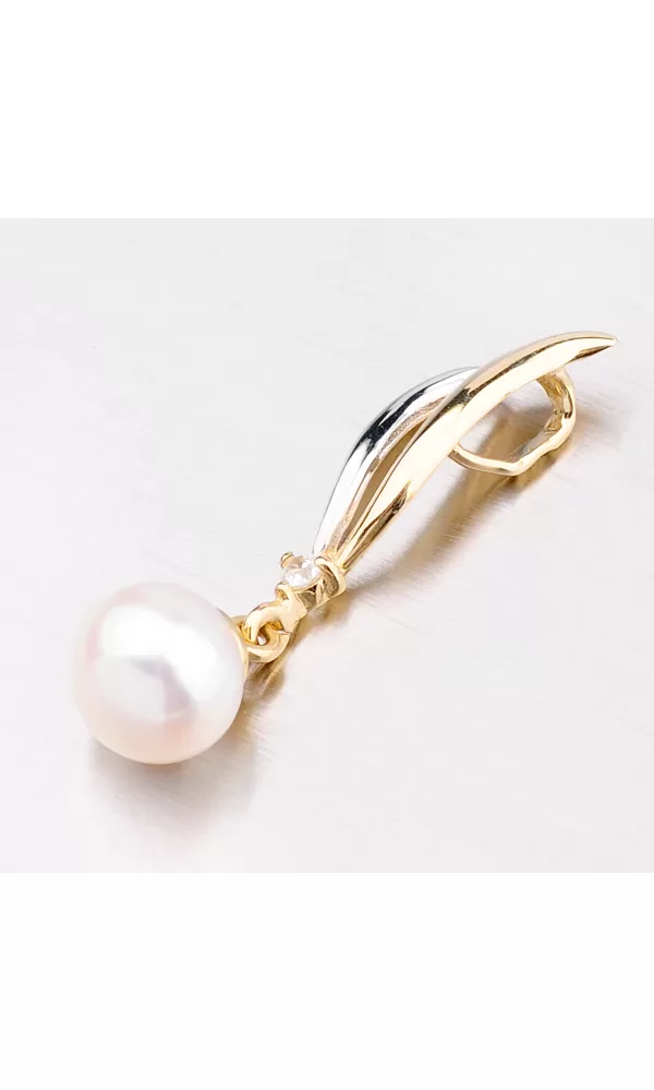 Máte rada perly? To tu pre vás máme perfektný prívesok vyrobený zo žltého štrnástich karátového zlata o rýdzosti 585/1000 v kombinácii bielej a žltej farby, ktorý obsahuje jednu oválnu prírodnú perlu a zirkón. Perla bude nádherným doplnkom k vášmu outfitu a upúta pozornosť na všetkých akciách, ktorých sa spolu s týmto príveskom zúčastníte. Perly sú znakom urodzenosti a elegancie. Prívesok bol skontrolovaný puncovým úradom, ktorý overil jeho kvalitu a označil štátnym puncom pre danú rýdzosť.