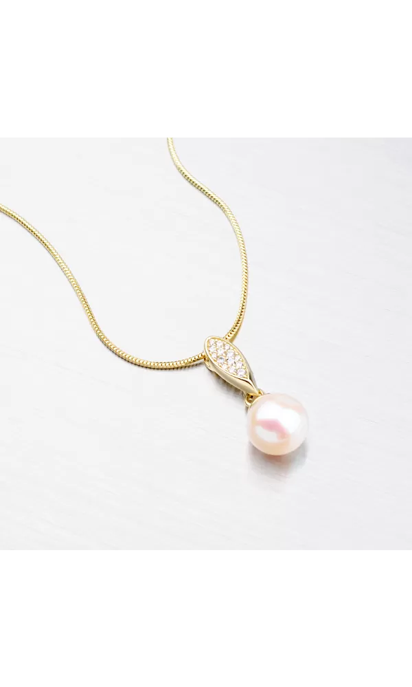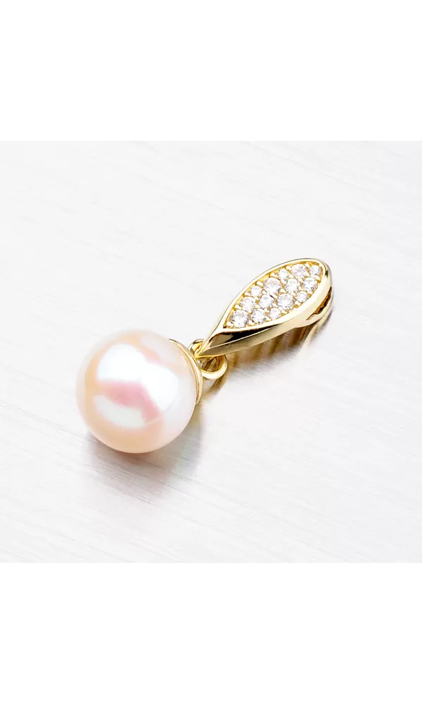 Perlový prívesok je vyrobený zo žltého štrnásťkarátového zlata 585/1000 v lesklej povrchovej úprave. Prívesok je navyše osadený žiarivými zirkónmi a bielou perlou. Podľa systému ohodnotenia perál je kvalita tejto sladkovodnej perly AAA – jedná sa najvyššiu kvalitu perly. Povrch má veľmi vysoký lesk a minimálne 95% povrchu perly je bez akéhokoľvek typu poškodenia. Elegantný perlový prívesok si určite obľúbite, pretože je vhodný na každodenné nosenie aj do spoločnosti. Perlové šperky sú symbolom urodzenosti a elegancie.