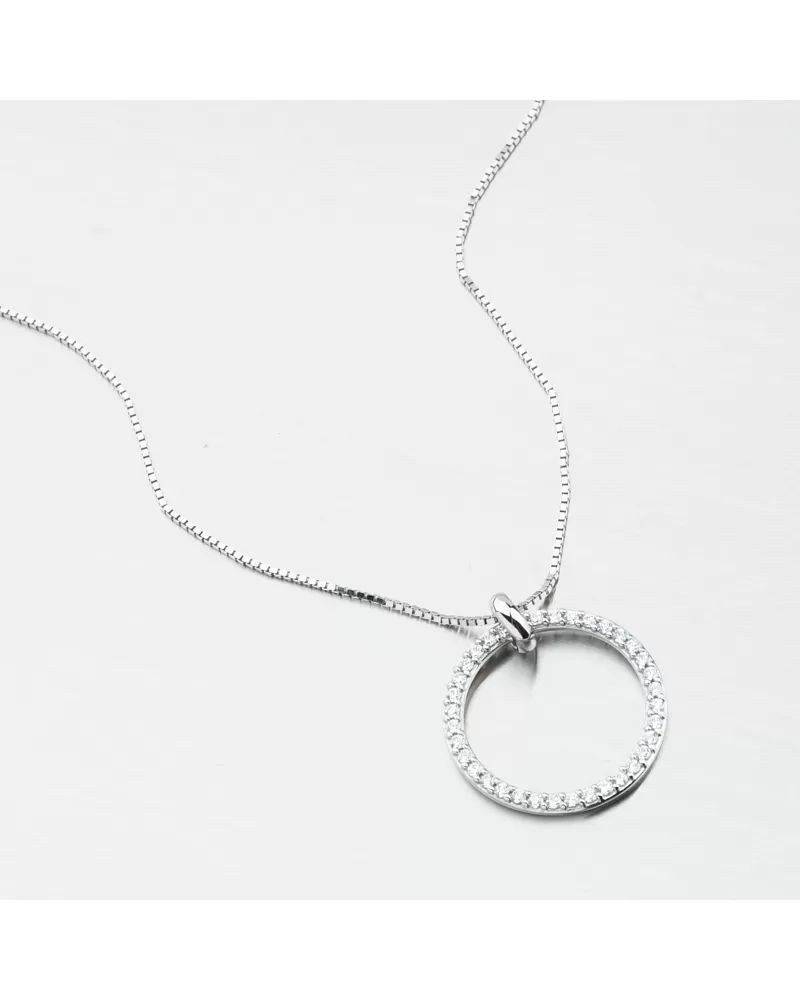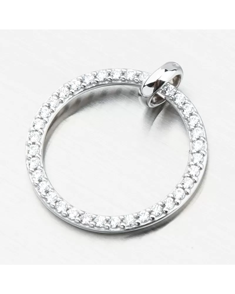 Skvelý tip na darček, ktorý určite oslňuje svojím elegantným dizajnom. Prívesok pozostáva z jednoduchého kruhu, ktorý je vysadený v brilantnom brúsení. Brilantný strih dáva zirkónom trblietky skutočných diamantov. Zirkóny sú fascinované vedľa seba s dokonalou presnosťou.