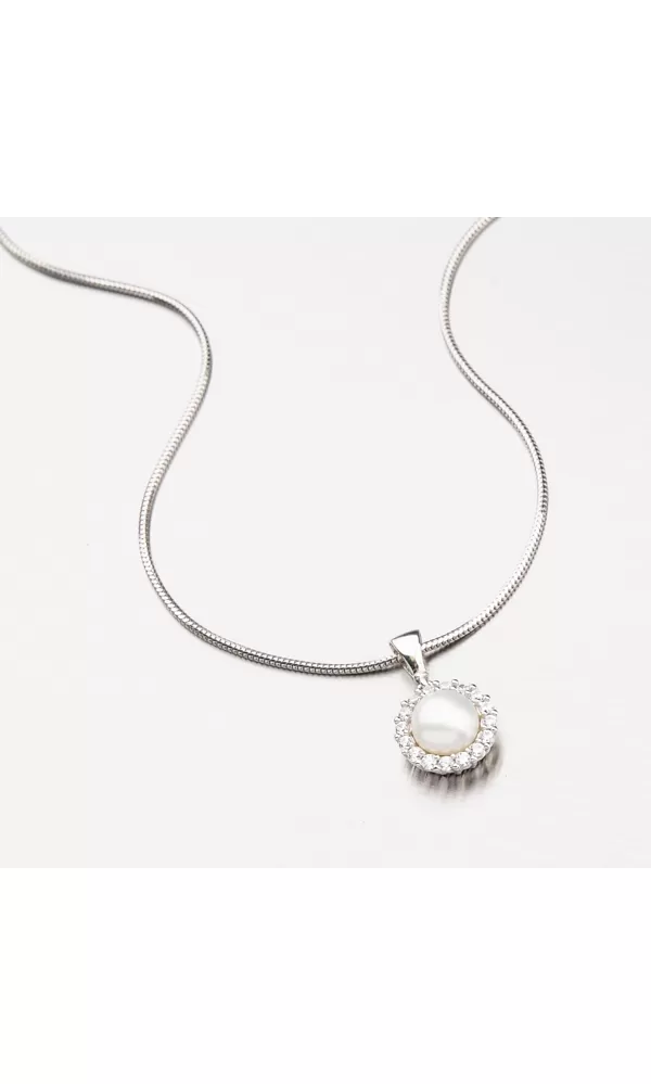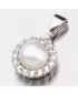 Romantický prívesok okrúhleho tvaru zdobí umelá perla bielej farby, ktorá je vysadená zirkónmi v briliantovom bruse. Krásny prívesok je vyrobený z… Celý popis