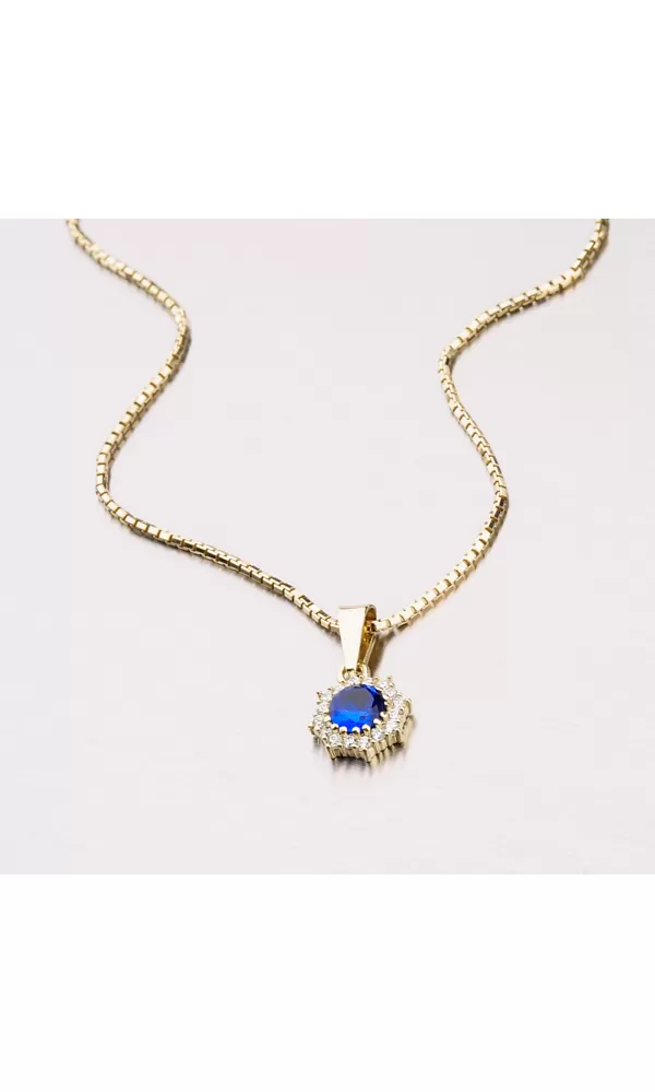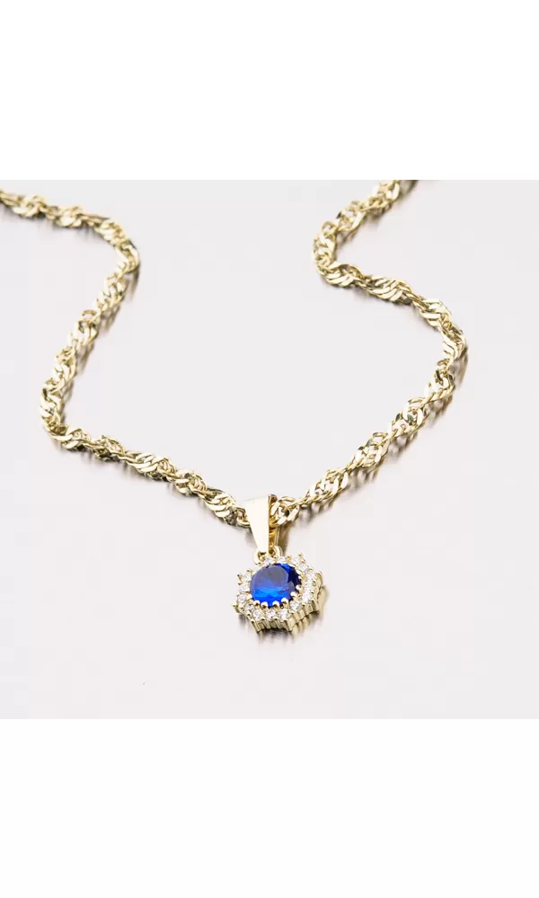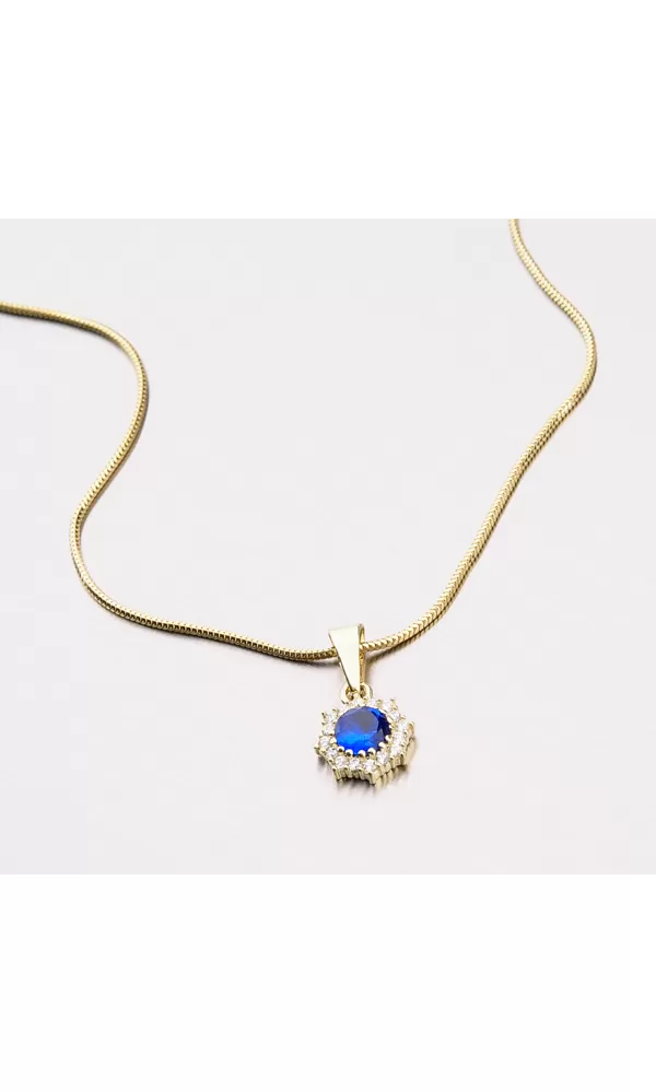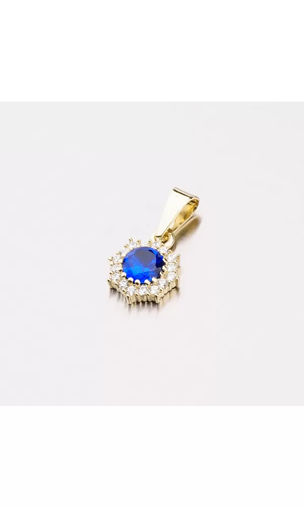 Jemný ale výrazný prívesok sa bude krásne vynímať e vašom dekolte. Prívesok je zdobený sýto modrým zirkónom, ktorý je obklopený menšími čírymi zirkónmi v briliantovom bruse. Krásny prívesok je vyrobený zo zlata o rýdzosti 585/1000 v lesklej povrchovej úprave. K tomuto prívesku je vhodná retiazka o šírke 2,00 mm.