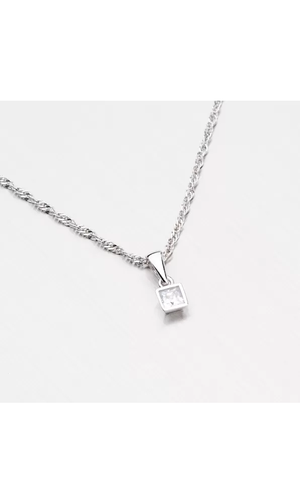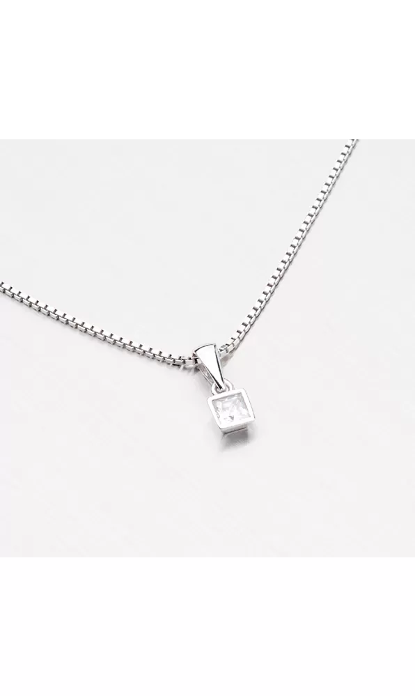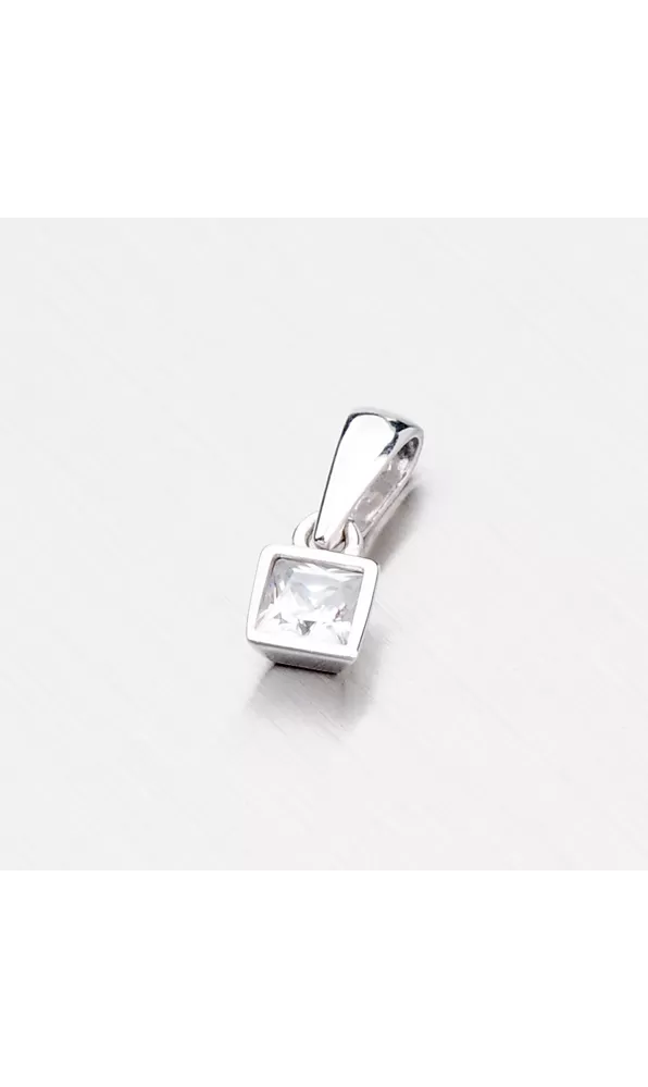 Drobný zlatý prívesok, ktorý je zdobený žiarivým zirkónom. Prívesok je štvorcový a svojím vzhľadom bude vhodný pre všetky udalosti. Prívesok je vyrobený z bieleho štrnásťkarátového zlata 585/1000 v lesklej povrchovej úprave.