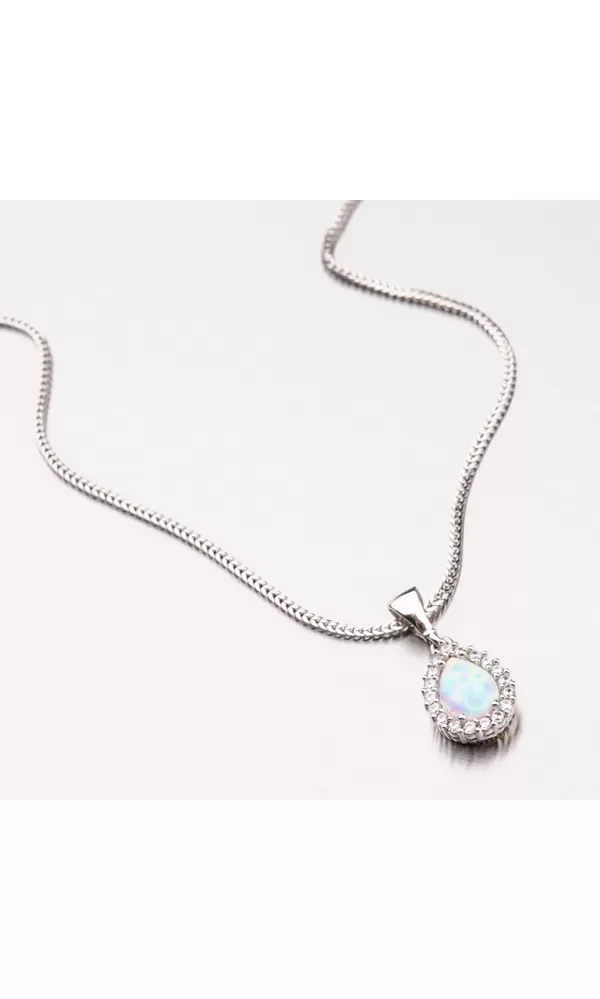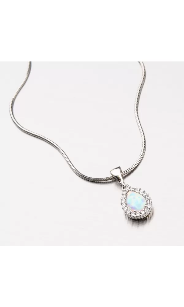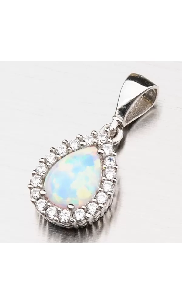 Prívesok z bieleho zlata s opálom a zirkónmi 13-193
