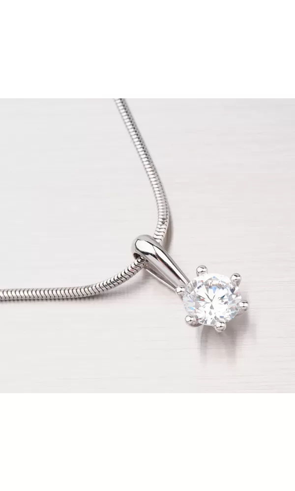 Dámsky prívesok je vyrobený z bieleho štrnásťkarátového zlata 585/1000 v lesklej povrchovej úprave s jedným veľkým bielym zirkónom. K tomuto prívesku je vhodné použiť retiazku o max. priemere 2,00 mm.