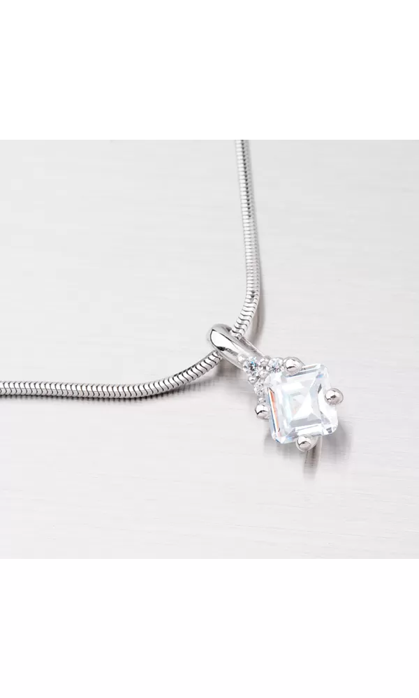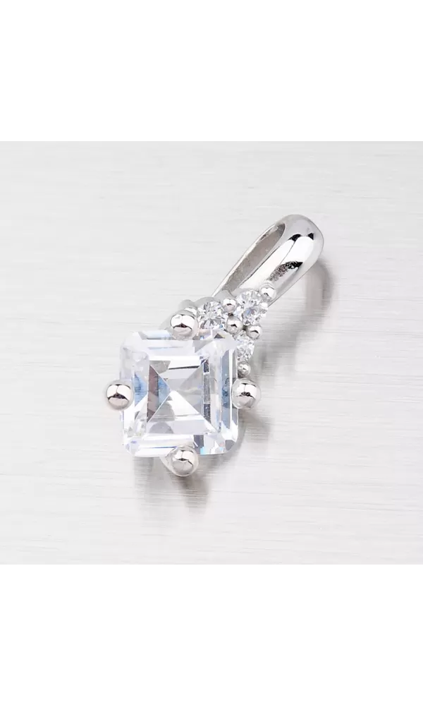 Dámsky prívesok je vyrobený z bieleho štrnásťkarátového zlata 585/1000 v lesklej povrchovej úprave s jedným väčším hranatým zirkónom a menšími okrúhlymi zirkónmi. K tomuto prívesku je vhodné použiť retiazku o max. priemere 2,25 mm.