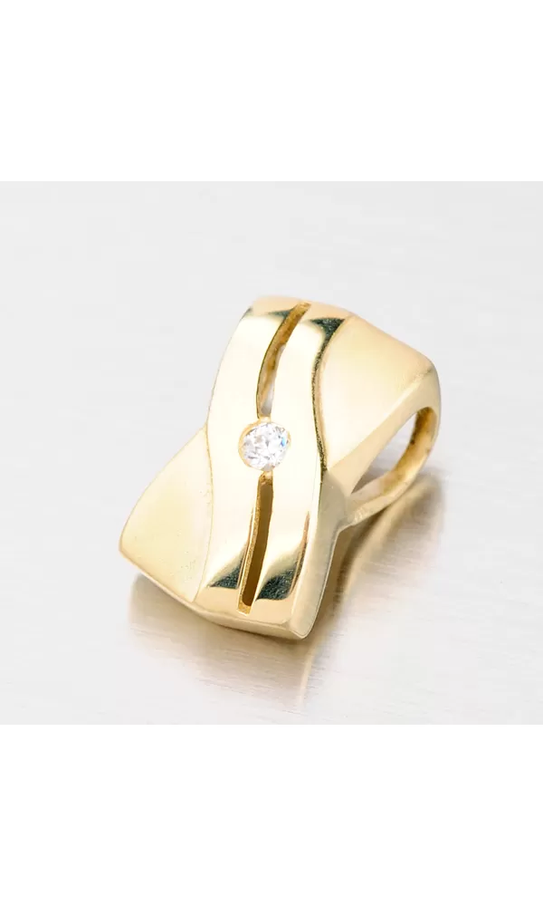 Elegantný prívesok so zirkónom zo žltého štrnásťkarátového zlata 585/1000 v kombinácii lesklej a matnej povrchovej úpravy. Biely zirkón vsadený doprostred prívesku prejasní váš vzhľad a bude krásne žiariť zo všetkých uhlov a to vďaka jeho briliantovému brúsu. Matný povrch prívesku vám dodá na elegancii a zaujme každého vo vašom okolí.