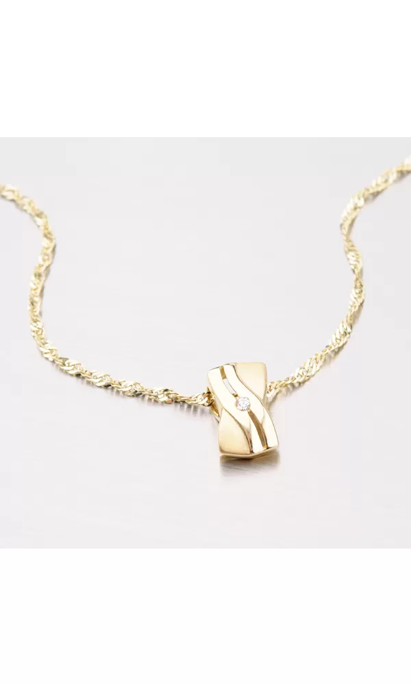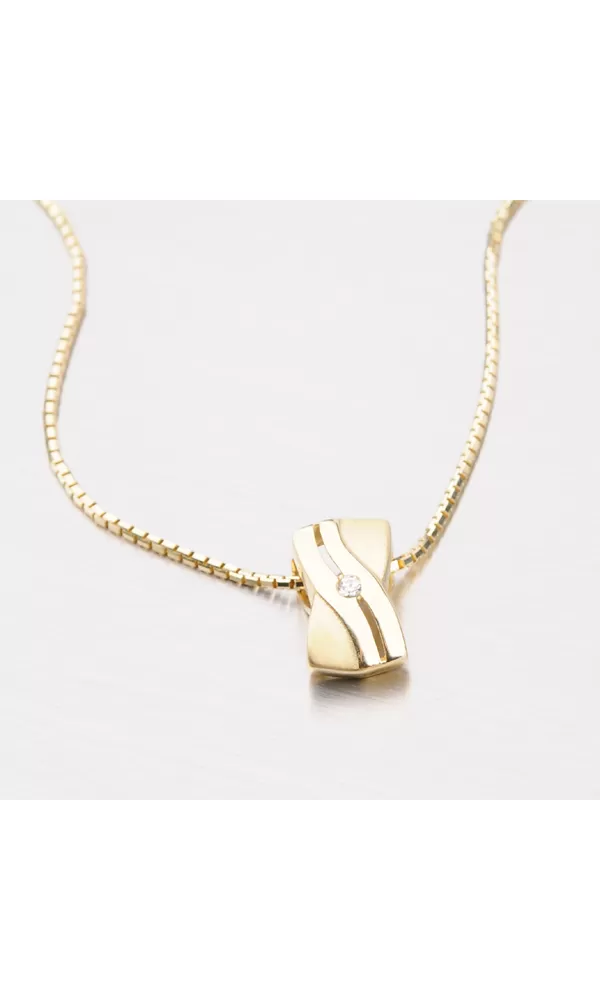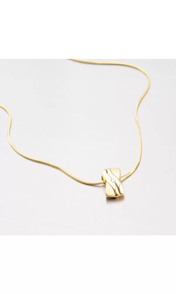 Elegantný prívesok so zirkónom zo žltého štrnásťkarátového zlata 585/1000 v kombinácii lesklej a matnej povrchovej úpravy. Biely zirkón vsadený… Celý popis