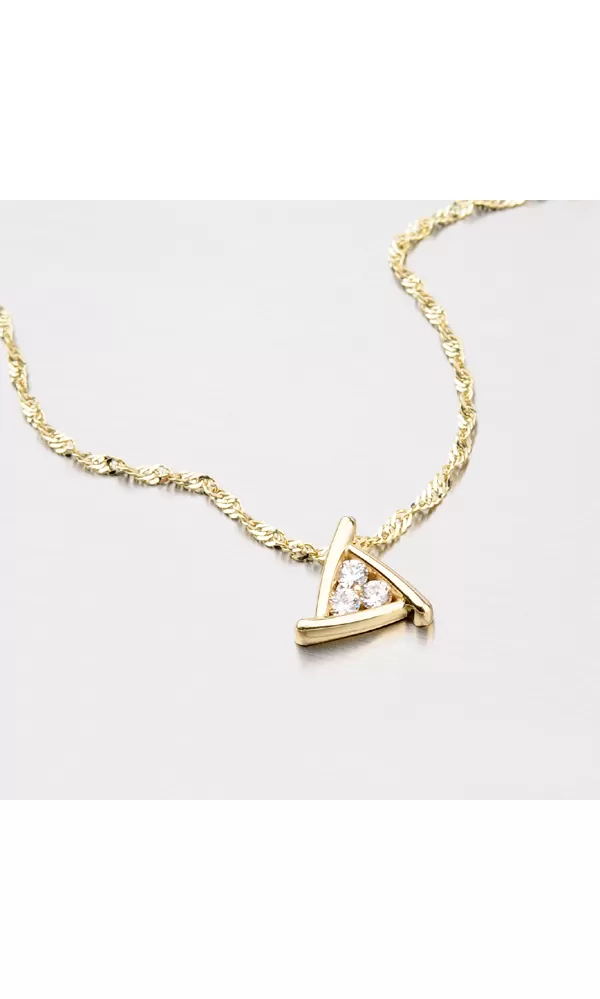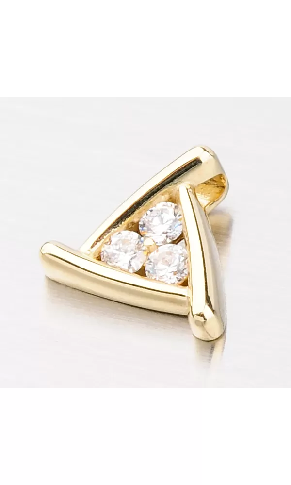 Elegantný prívesok s tromi bielymi zirkónmi zo žltého štrnástich karátového zlata 585/1000 v lesklej povrchovej úprave. Prívesok má očko na retiazku priamo v sebe. Prívesok nádherne rozjasní váš vzhľad a rozhodne vám neurobí hanbu na žiadnej akcii.