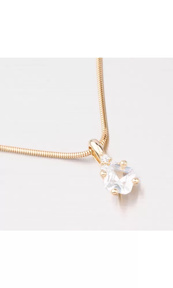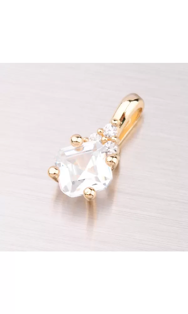 Dámsky prívesok je vyrobený zo žltého štrnásťkarátového zlata 585/1000 v lesklej povrchovej úprave s jedným väčším hranatým zirkónom a menšími okrúhlymi zirkónmi. K tomuto prívesku je vhodné použiť retiazku o max. priemere 2,25 mm.