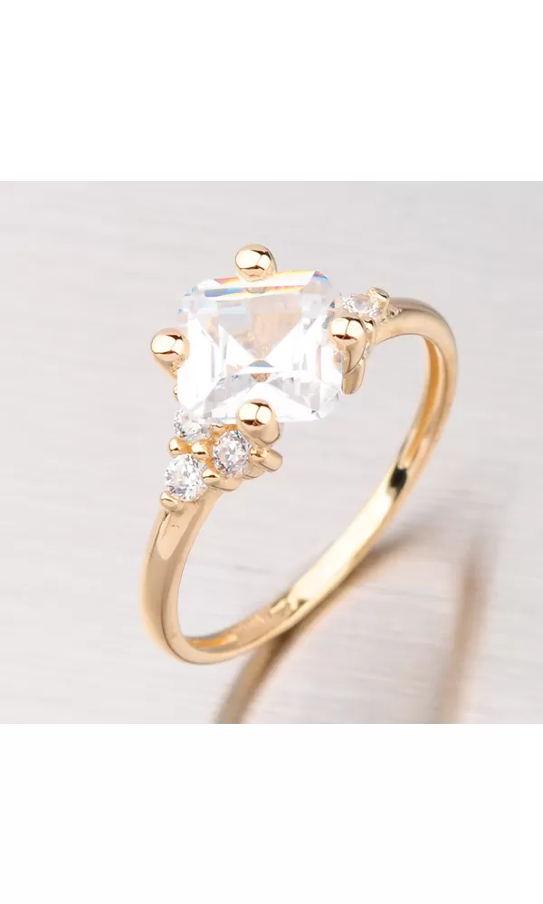 Dámsky prívesok je vyrobený zo žltého štrnásťkarátového zlata 585/1000 v lesklej povrchovej úprave s jedným väčším hranatým zirkónom a menšími… Celý popis