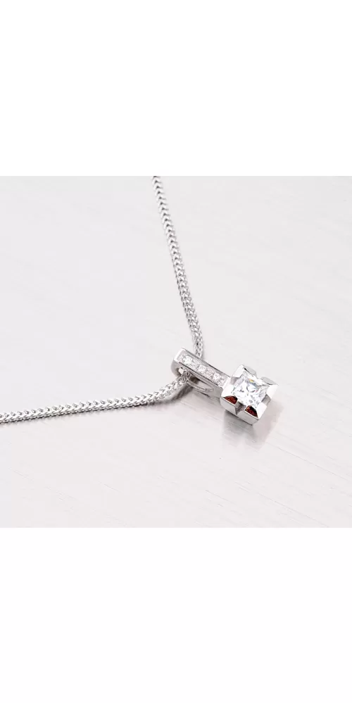 Luxusný prívesok z bieleho štrnásťkarátového zlata 585/1000 v lesklej povrchovej úprave vám bude závidieť nejedna kamarátka. Prívesok je zdobený žiarivými zirkónmi.