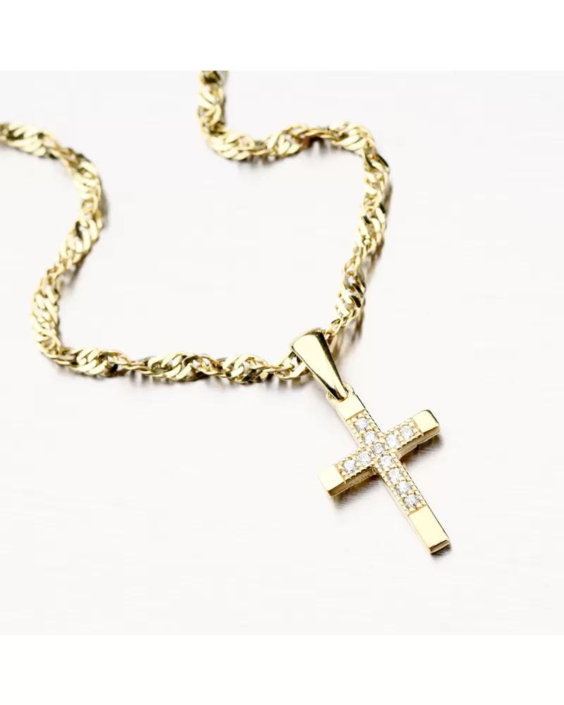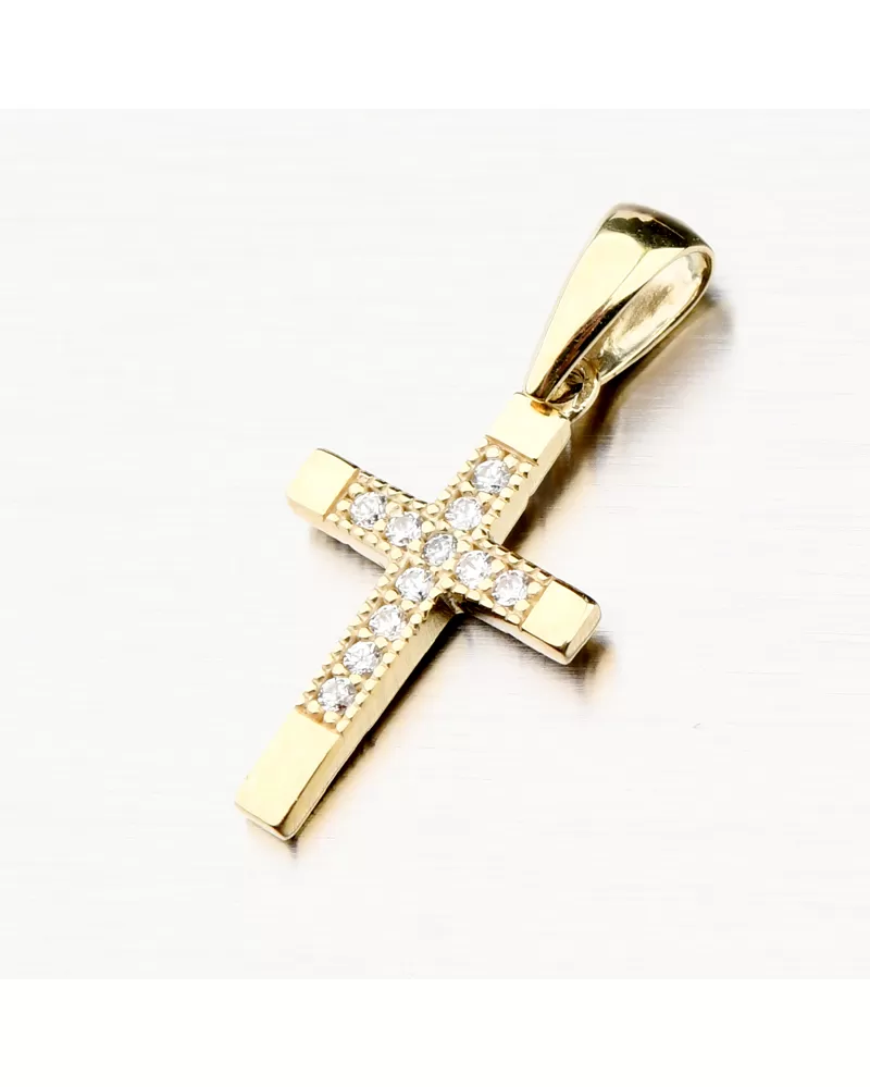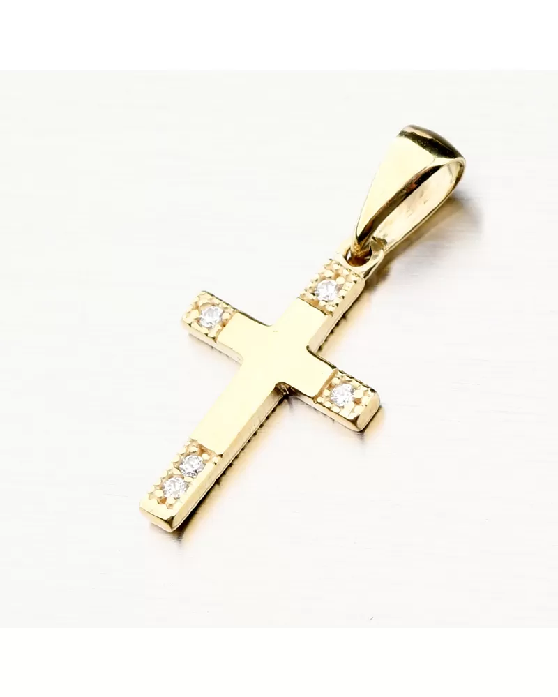 Prívesok v tvare kríža sa môže pýšiť vsadenými zirkónmi, ktoré sú brúsené do briliantového brusu. Tento brús dodáva zirkónom brilanciu pravých diamantov. Zvyšné zlaté plochy prívesku sú leštené do vysokého lesku. Prívesok má obojstranné prevedenie, takže si sami môžete zvoliť, akou stranou sa dnes chcete dobiť. Tento prívesok je vhodný na každodenné nosenie. Stane sa Vaším obľúbeným šperkom.