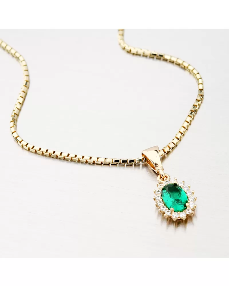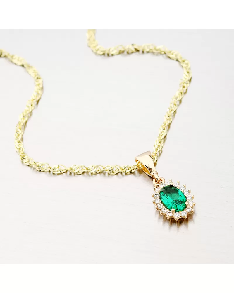 Vyzdobte svoj decollet luxusným príveskom v oválnom tvare, ktorý zdobuje syntetický smaragd. Syntetický smaragd je pevne pripojený štyrmi stupnicami a jeho krása je doplnená zirkónmi v brilantnom strihu.