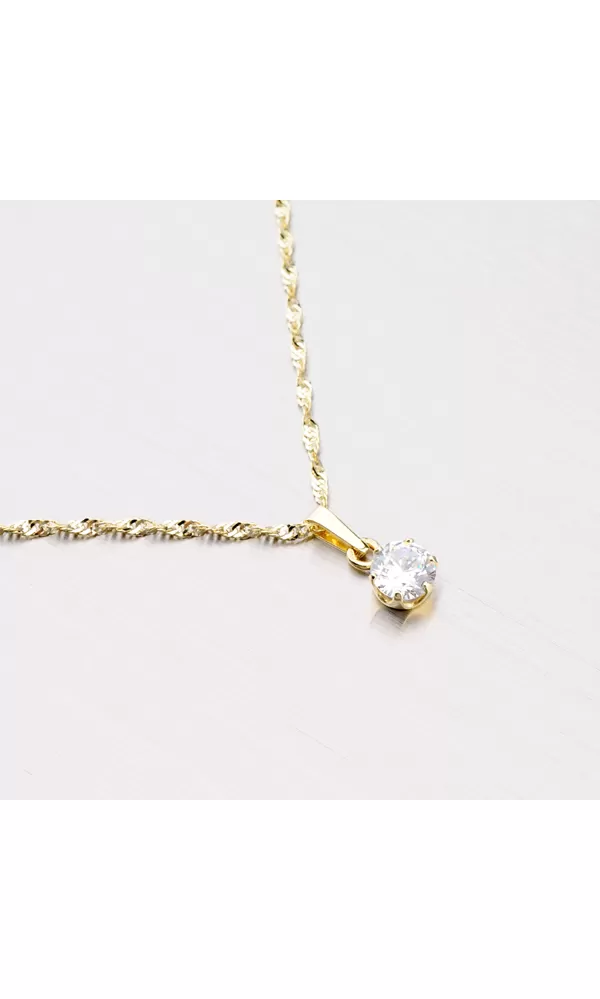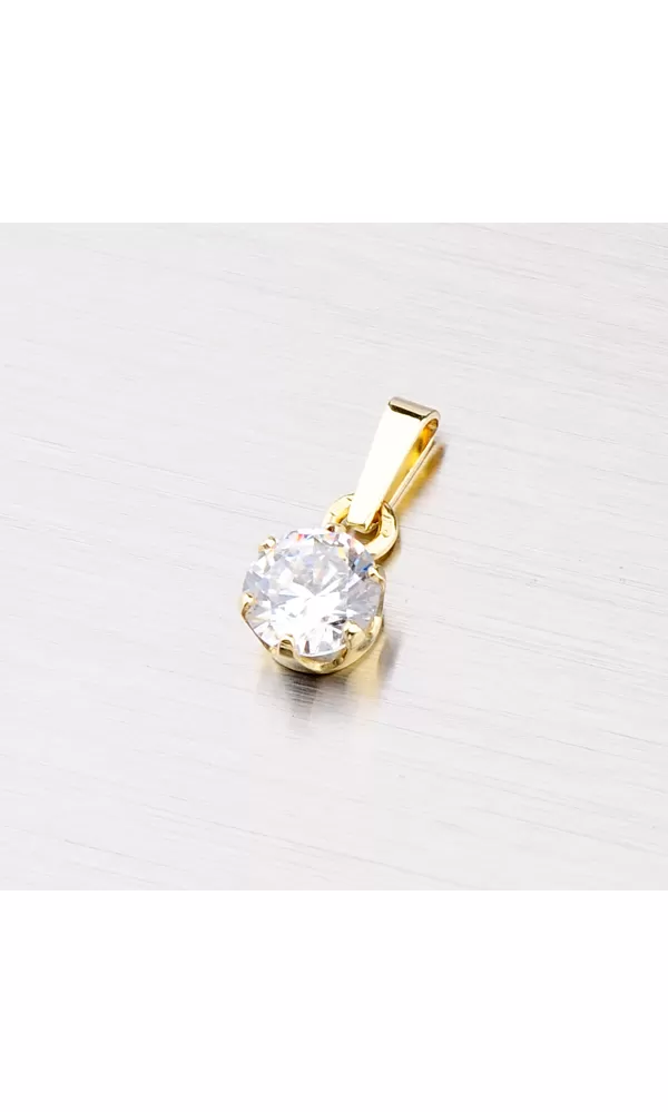Krásne jemné dámske prívesky vyrobené zo žltej štrnástich -karatovej zlata 585/1000 v lesklom povrchu. Prívesok je zdobený žiarivým zirkónom, ktorý nemožno prehliadnuť. Na tento prívesok je vhodné použiť maximálny priemer 2,00 mm.