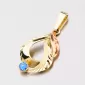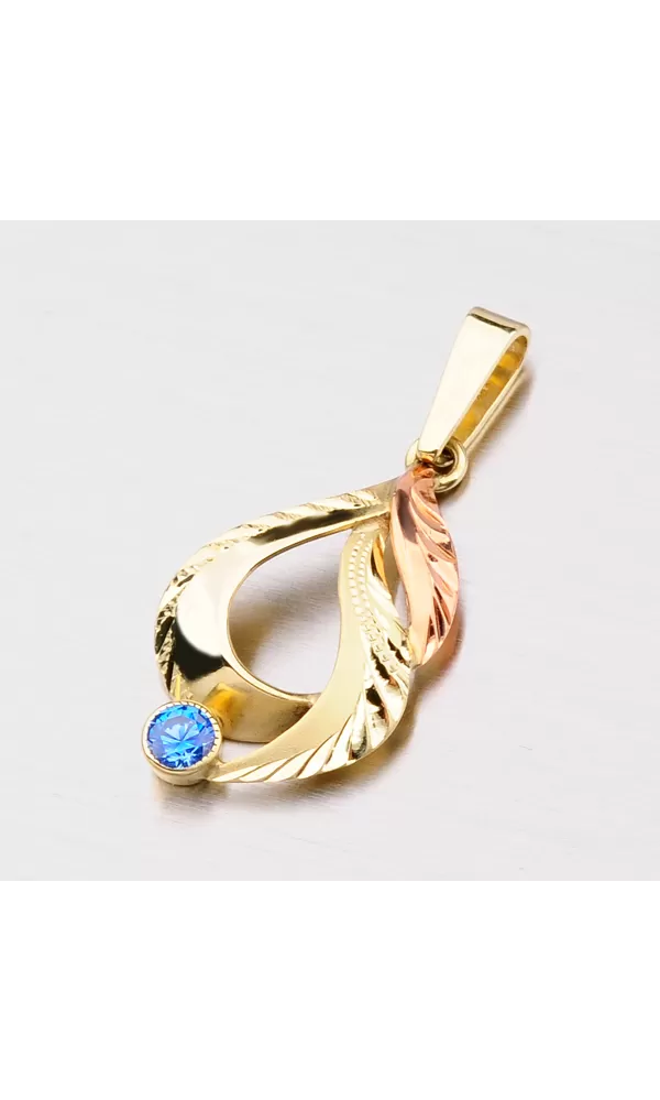 Sofistikovaný prívesok je vyrobený z tradičnej techniky šperkov v kombinácii žltého a červeného štrnástich zlatých zlata 585/1000 v kombinácii lesklého a pieskovaného povrchu. Prívesok je zdobený presným gravírovaním rúk a modrým zirkónom, ktorý sa nachádza na spodnej časti prívesku. Musíte mať tento sofistikovaný kúsok. Bude vyzerať krásne vo vašom dekoráne.