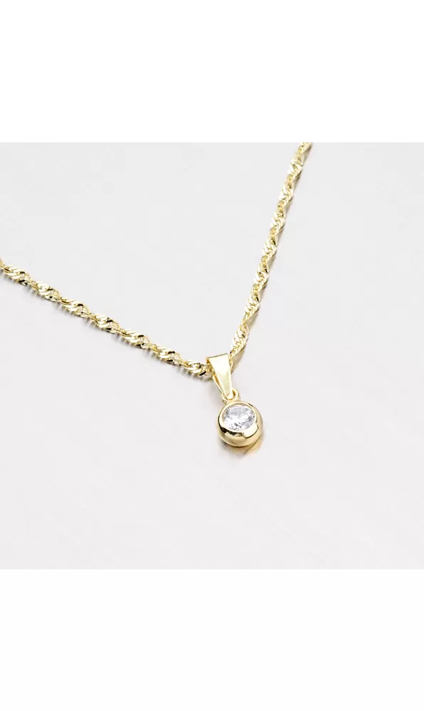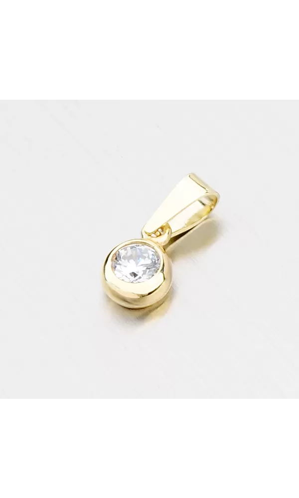 Drobný zlatý prívesok, ktorý je zdobený žiarivým zirkónom. Prívesok je okrúhly a svojím vzhľadom bude vhodný pre všetky udalosti. Prívesok je vyrobený zo žltého štrnásťkarátového zlata 585/1000 v lesklej povrchovej úprave.