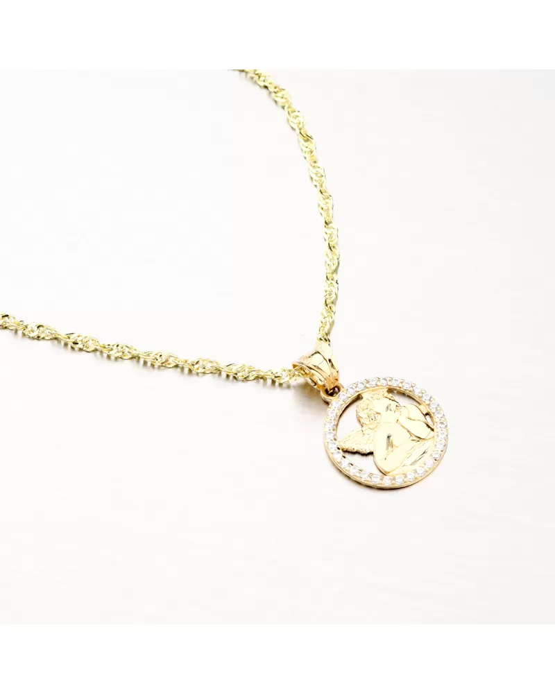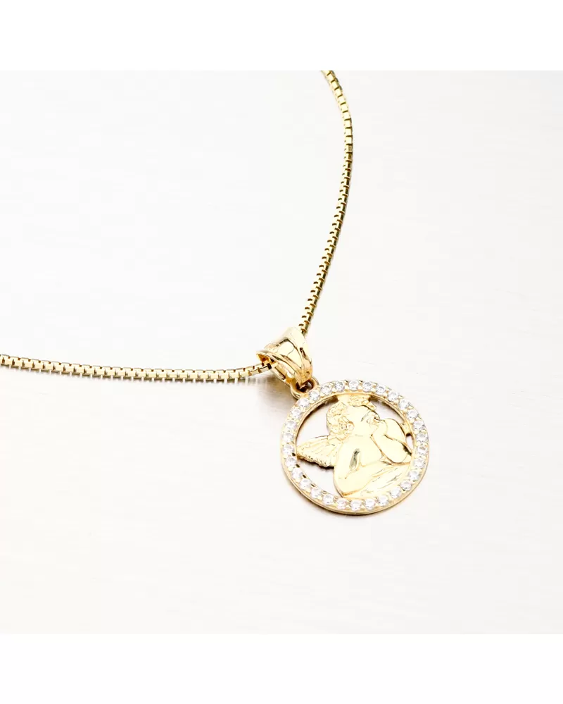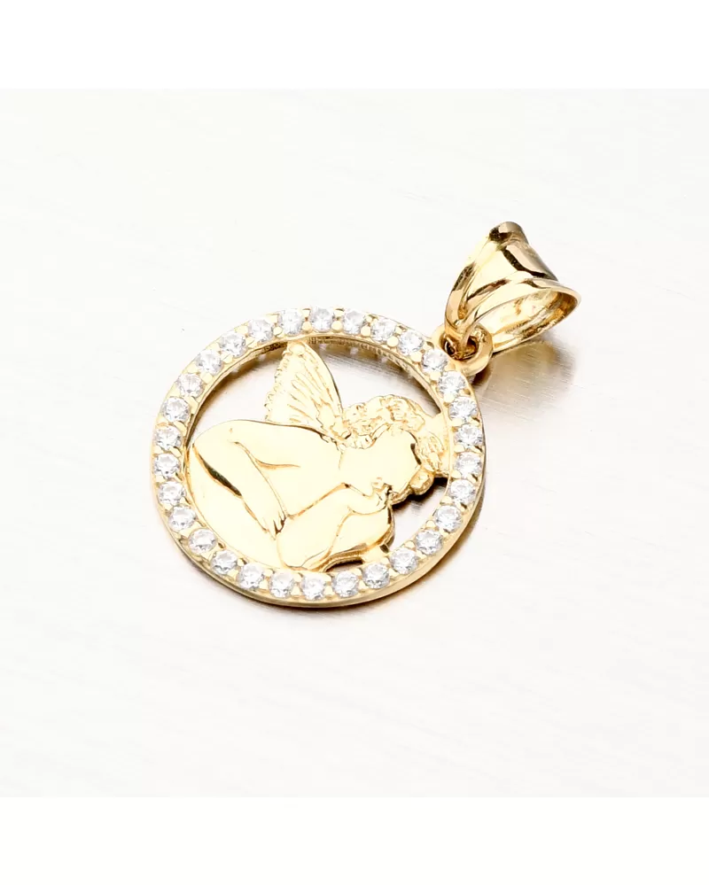 Roztomilý prívesok s motívom anjela, ktorý naznačuje, že očakávate ochranu od vyšších síl. Objavte krásu nebeských stvorení. Prívesok má vyobrazenú postavu anjelika, ktorý je vo vysokom lesku a potom okolo neho po celom obvode sú osadené žiarivé zirkóny v briliantovom bruse. Tento brus zaisťuje maximálnu brilanciu vybrúsených facet, dokonale odráža svetlo a neuveriteľné žiari z každého uhla pohľadu! Urobte radosť sebe alebo svojim najbližším.