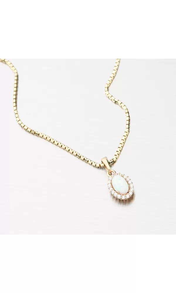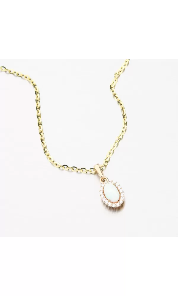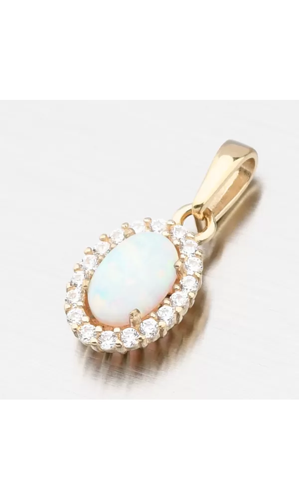 Zlatý prívesok s bielym opálom a zirkónmi 613G-024