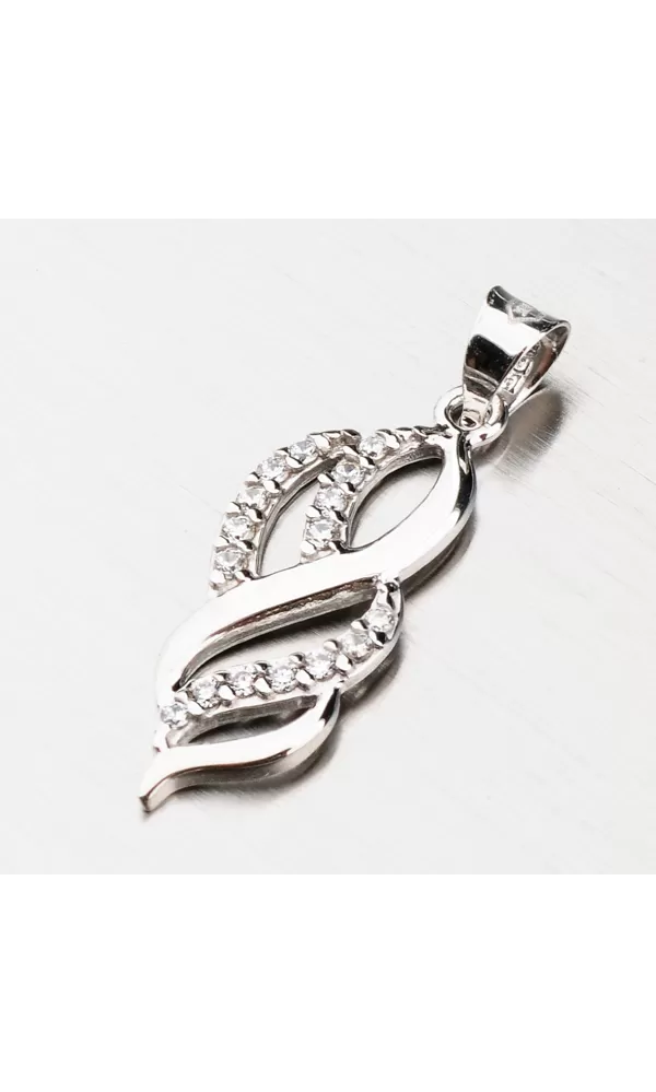 Prívesok je vyrobený z bieleho štrnásťkarátového zlata 585/1000 v lesklej povrchovej úprave. Zlatý prívesok je v elegantnom dizajne zdobený zirkónmi v briliantovom bruse.