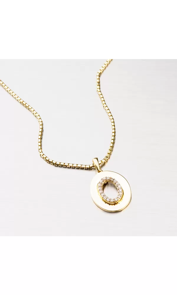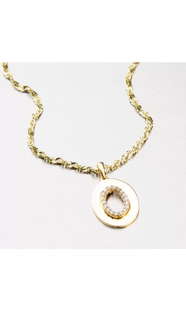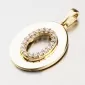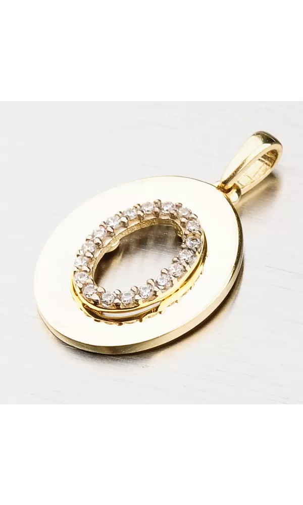 Prívesok je vyrobený zo žltého štrnásťkarátového zlata 585/1000 v lesklej povrchovej úprave. Zlatý prívesok je v oválnom tvare zdobený zirkónmi v briliantovom bruse. Tento prívesok zaujme ženy s elegantným vkusom čo hľadajú niečo jednoduché čo podčiarkne ich pôvab.