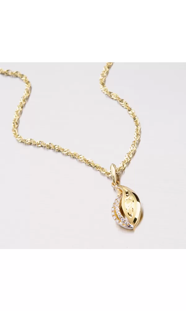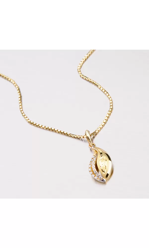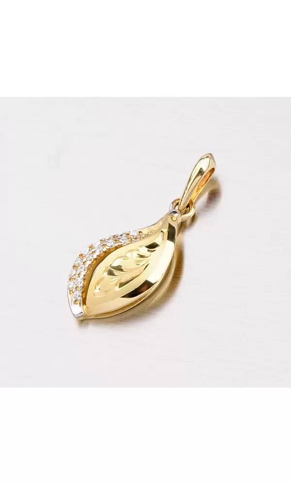Tento zlatý prívesok zaručene poteší Vašich milovaných! Prívesok je vyrobený zo štrnásťkarátového zlata 585/1000 v lesklej a matnej povrchovej úprave. Prívesok má ľavú polovicu osadenú bielymi zirkónmi v bielom zlate a pravá polovica obahuje ručnú rytinu na pieskovanom podklade na výlisku zo žltého zlata.